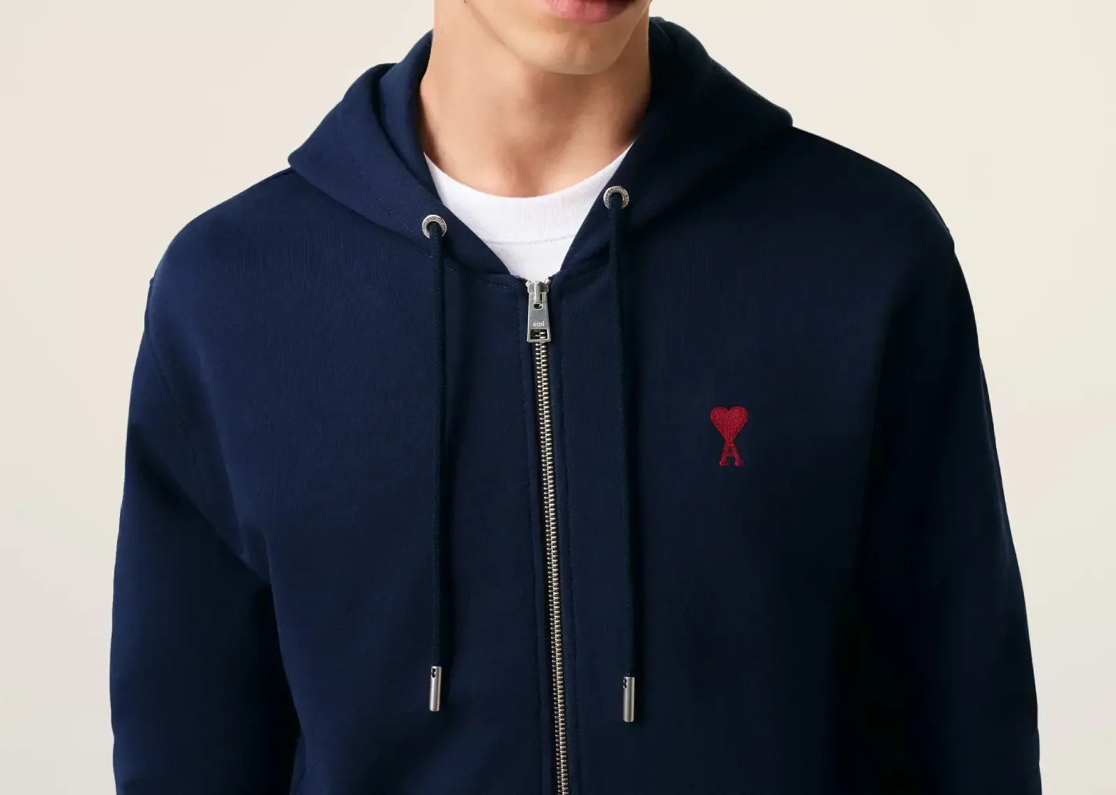 Ami Paris, Sneaker Baker'da bulunan Ami Paris Ami De Coeur Cotton Zipped Hoodie Navy modeliyle koleksiyonuna yeni bir parça ekliyor. Navy tonlarındaki bu seçkin tasarım, BFUSW435.730.430 ürün koduyla sınırlı sayıda üretildi.