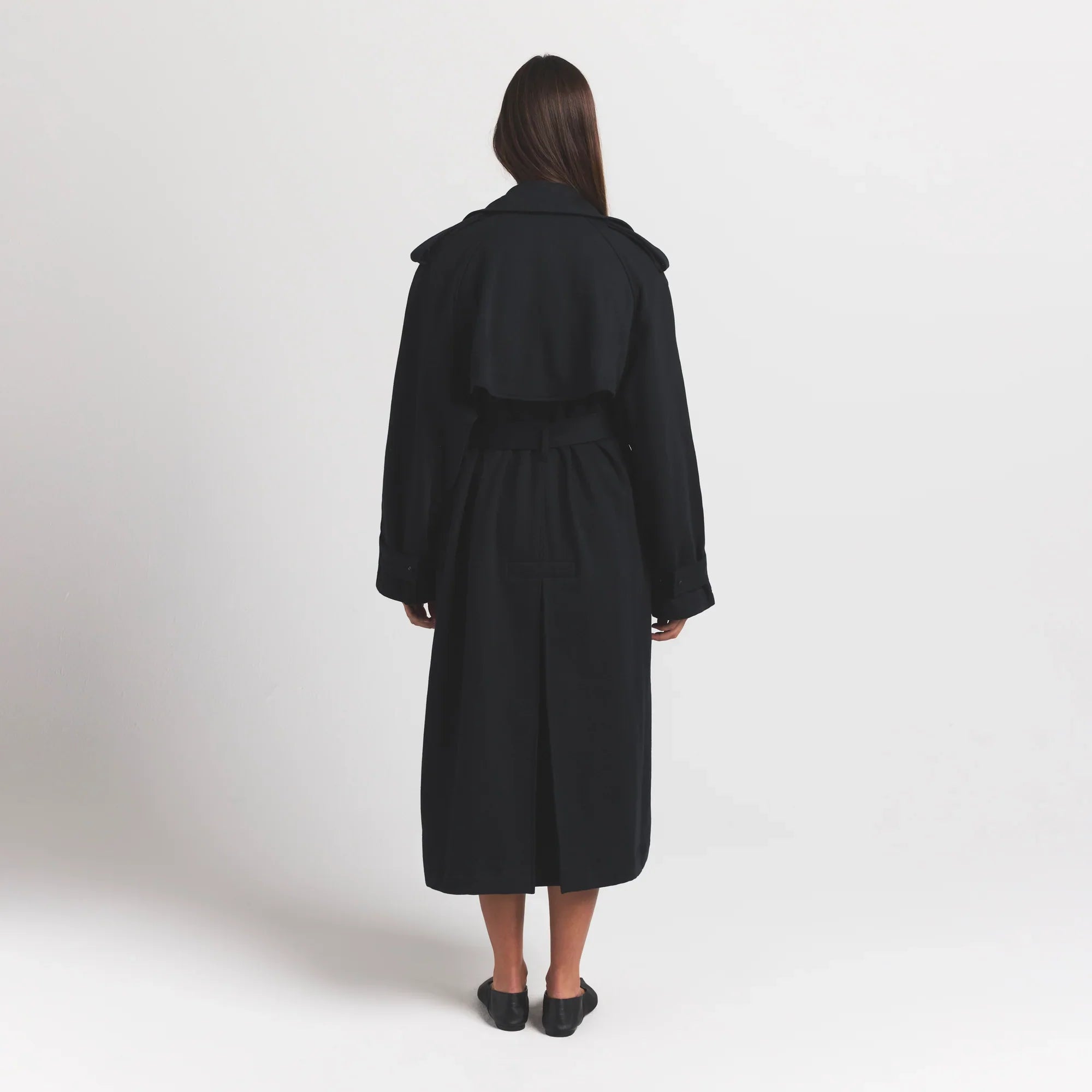 Bu palto, zarif bir görünüm için keskin bir yaka, arka pile detayı ve welt ceplerle tasarlanmıştır. Kendinden düğmeli parçalar ve ön ile arka fırtına kapakları, ekstra bir koruma katmanı sağlar.