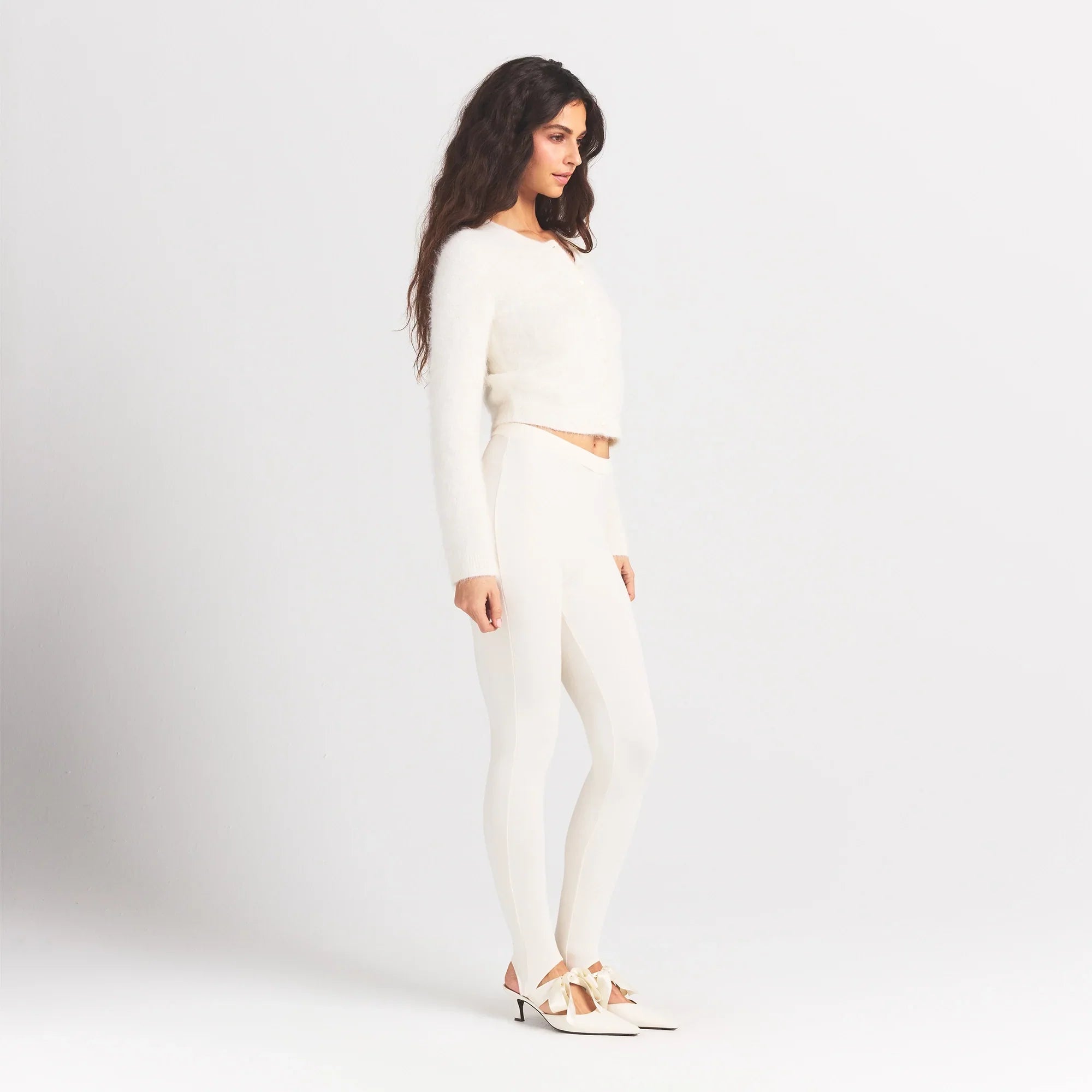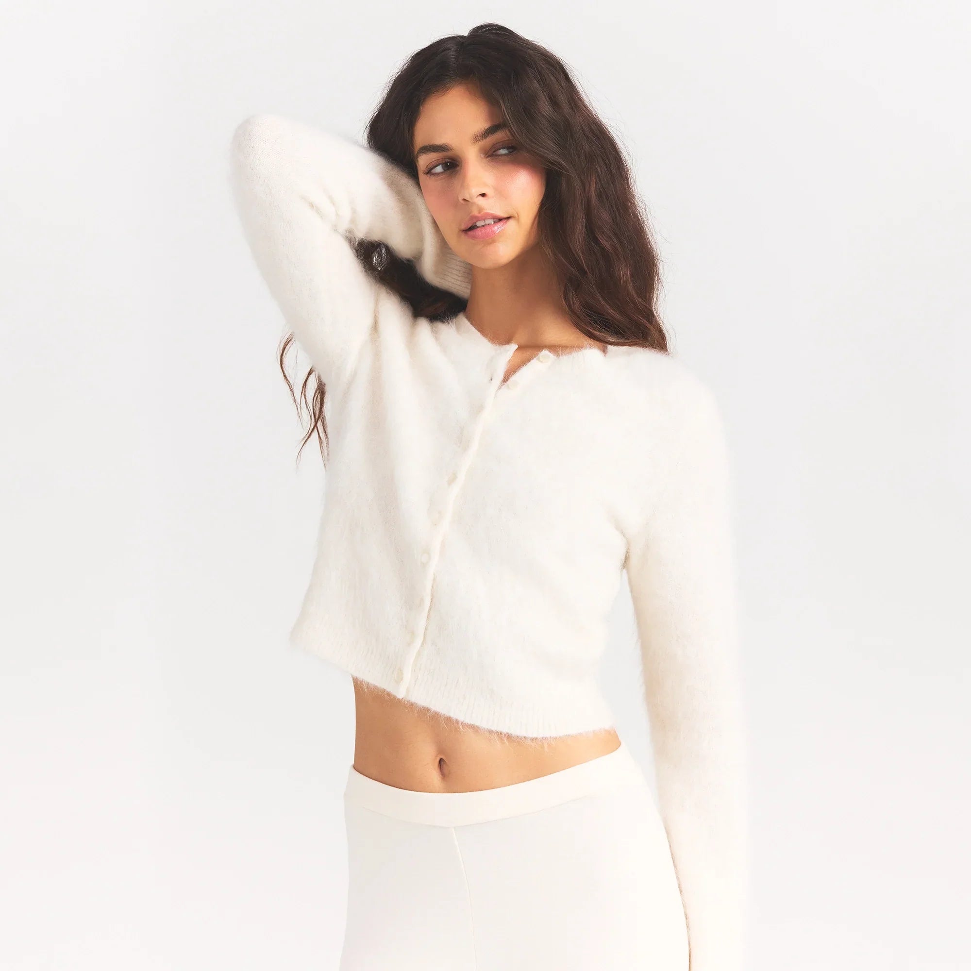SKIMS BRUSHED ALPACA LONG SLEEVE CARDIGAN | EGRET