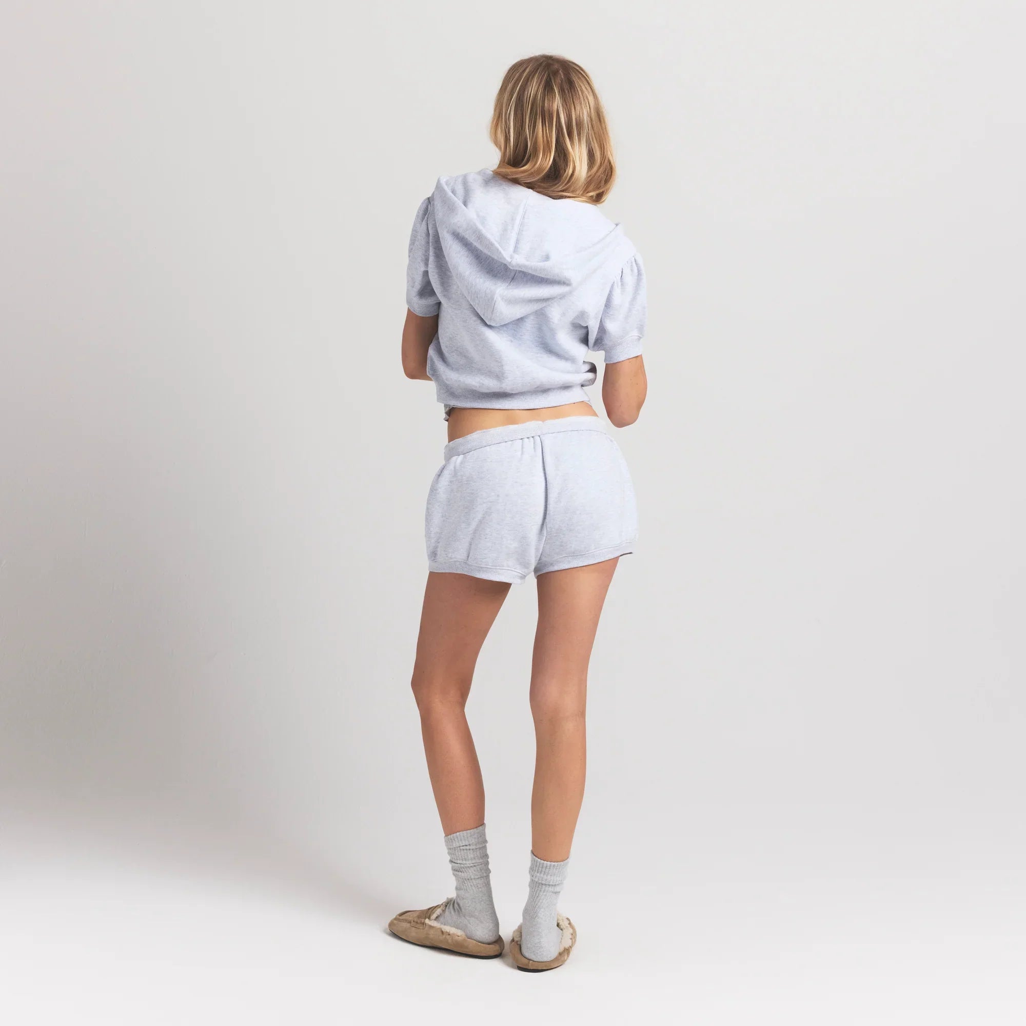 SKIMS COTTON FLEECE BUBBLE SLEEVE CROPPED ZIP UP | LIGHT HEATHER GREY