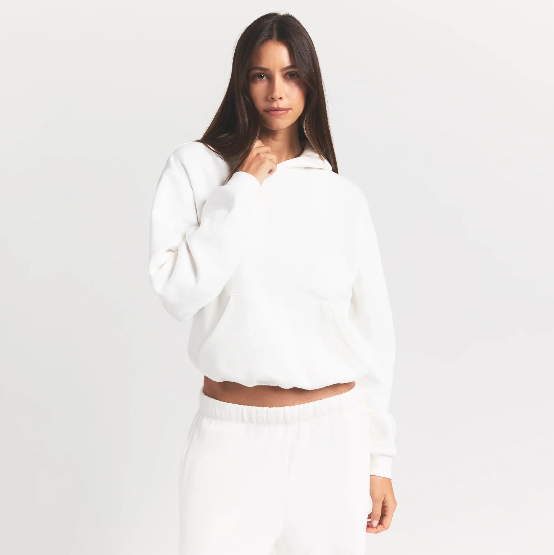 Tarzı asla geçmeyen bir hoodie. Yumuşak, bulut gibi bir kumaşla üretilmiş ve sol kolun üst kısmında kabartmalı bir logo ile zenginleştirilmiştir.
