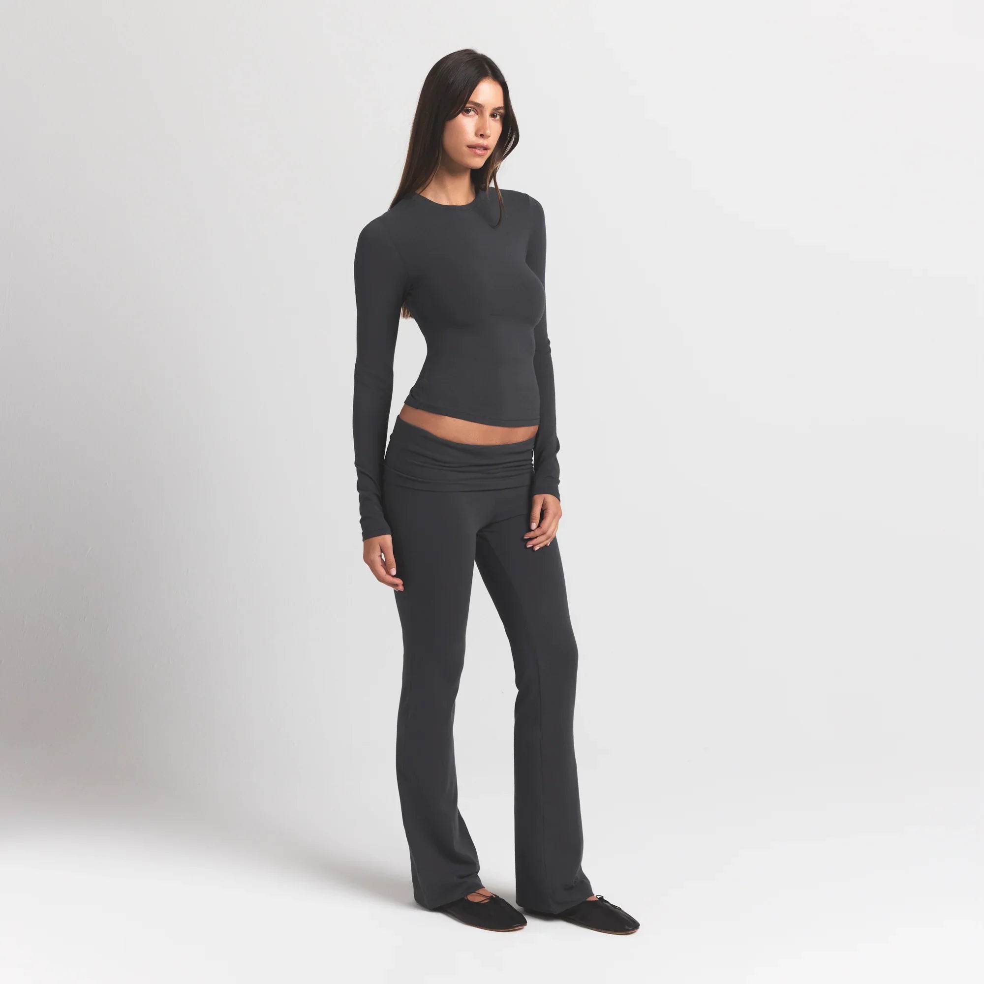 SKIMS COTTON JERSEY LONG SLEEVE T-SHIRT | ASH