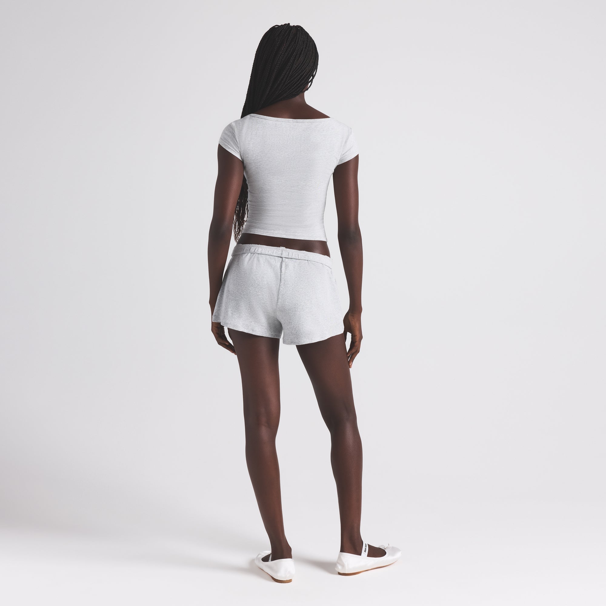 SKIMS COTTON JERSEY SCOOP NECK T-SHIRT | LIGHT HEATHER GREY