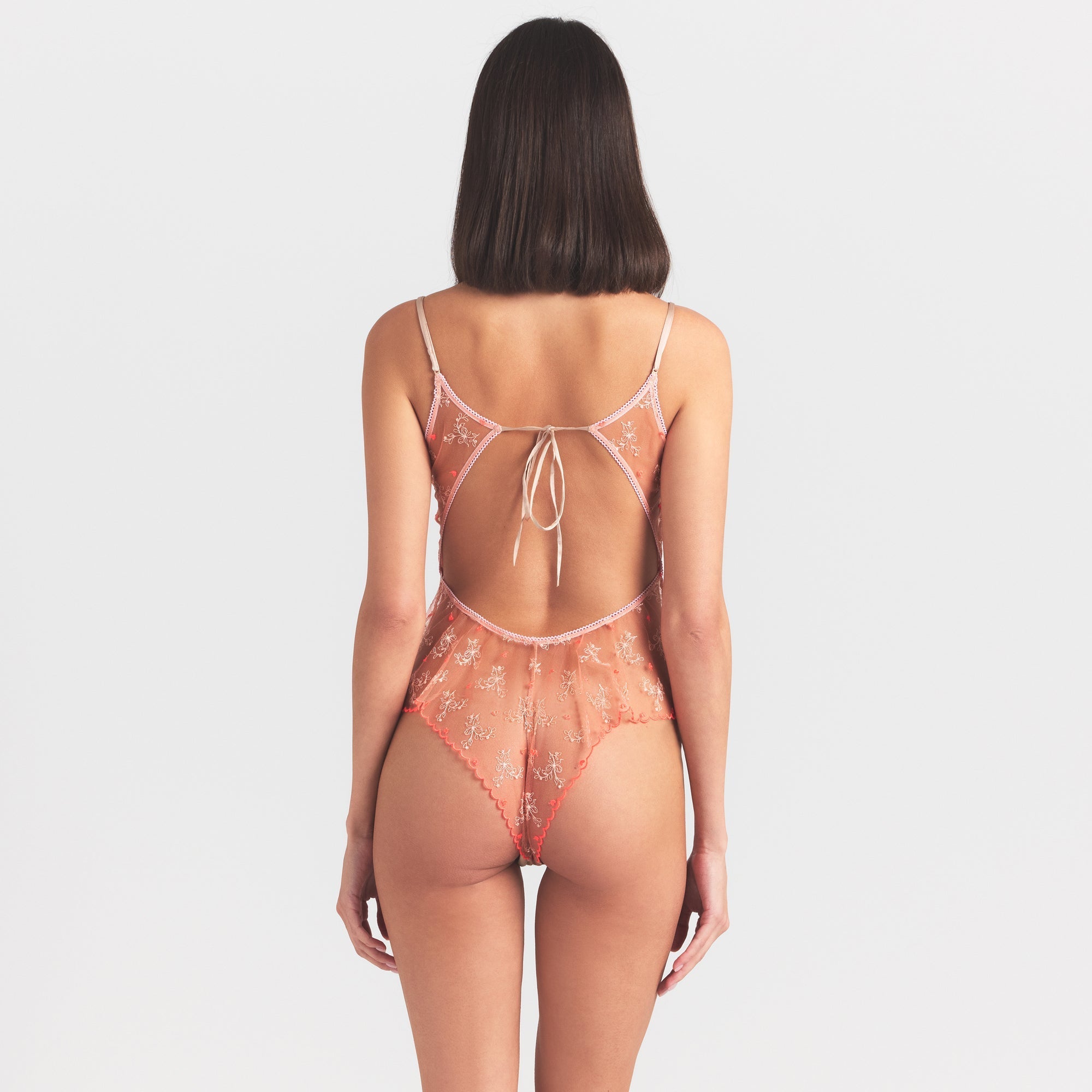 SKIMS EMBROIDERED TULLE GARTER TEDDY | GUAVA HEART TULLE
