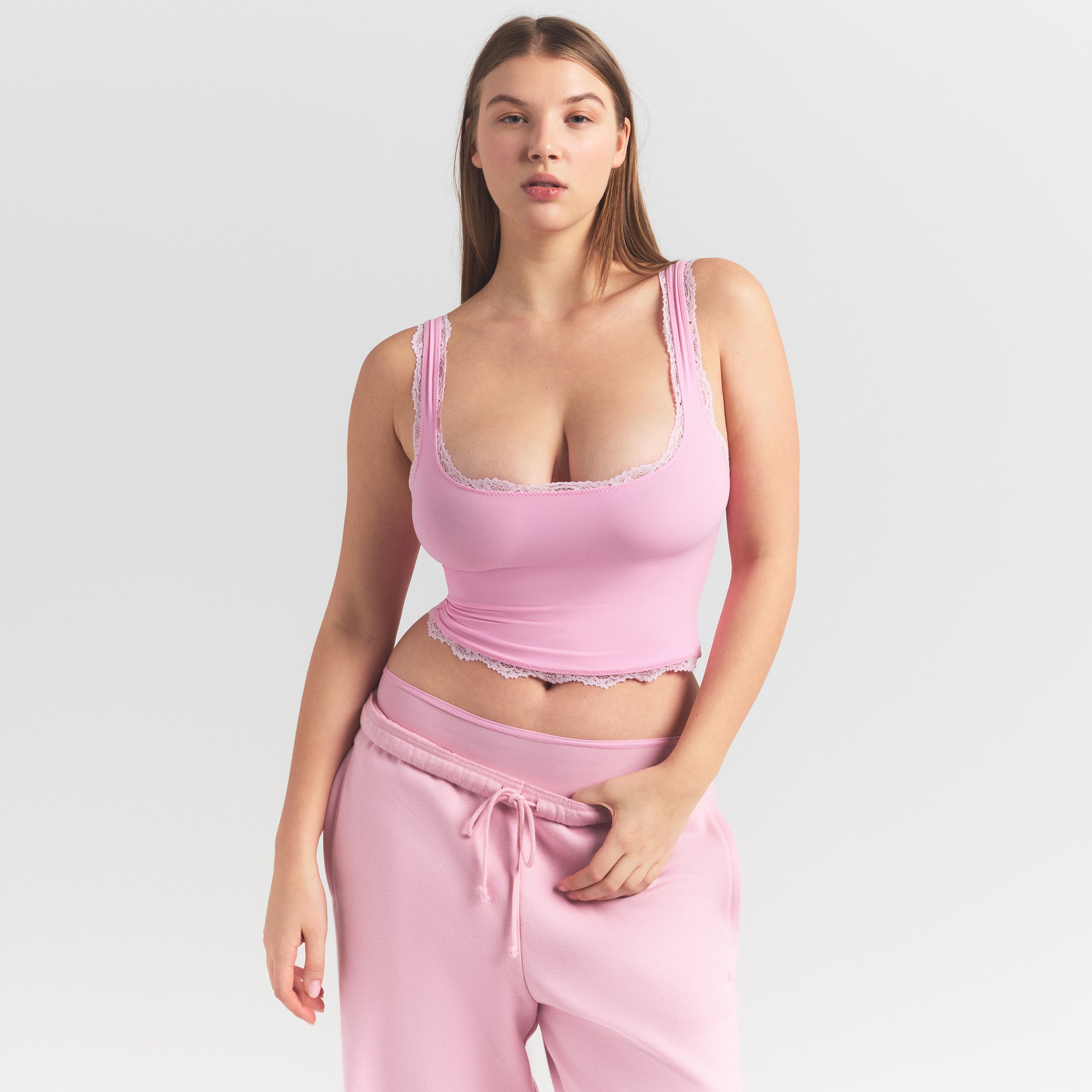 SKIMS FITS EVERYBODY LACE TANK | BUBBLE GUM TONAL