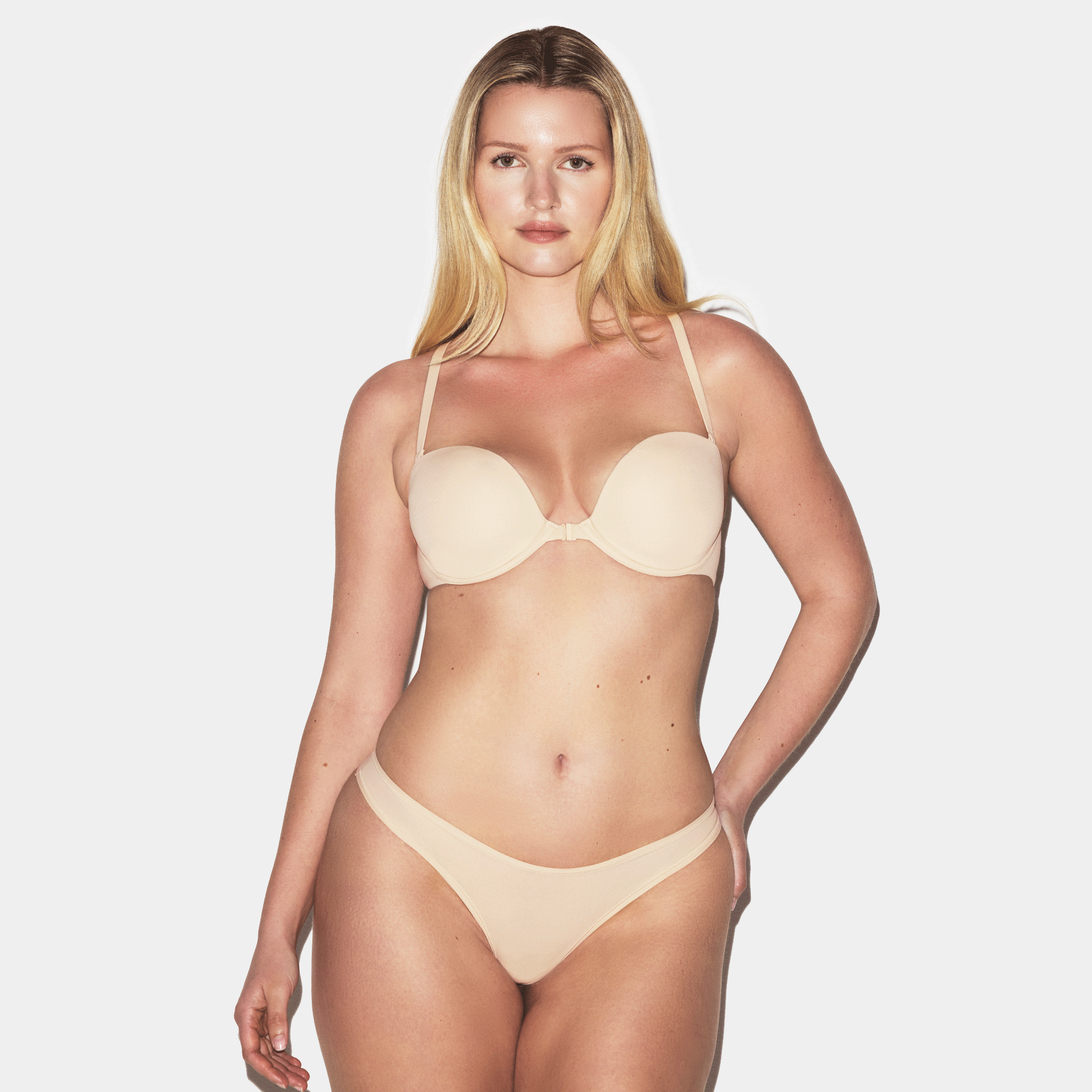 Bu, imza niteliğindeki yumuşak dokuya sahip sütyenimizdir ve şimdi racerback demi tarzında sunulmaktadır. Bu çözüm, racerback tişörtler, elbiseler ve daha fazlası altında kesintisiz destek sağlamak için imza niteliğindeki Fits Everybody kumaşında tasarlanmıştır.