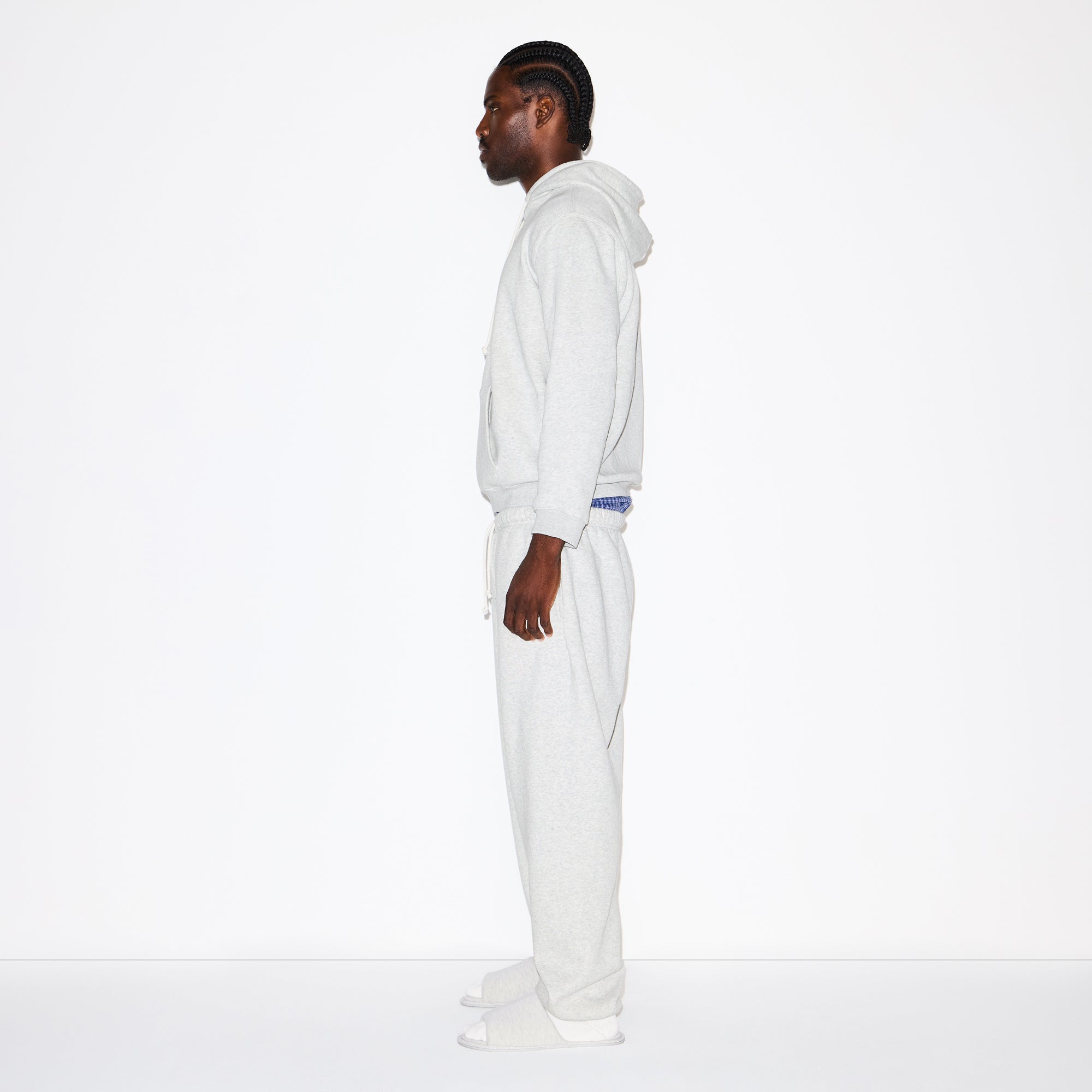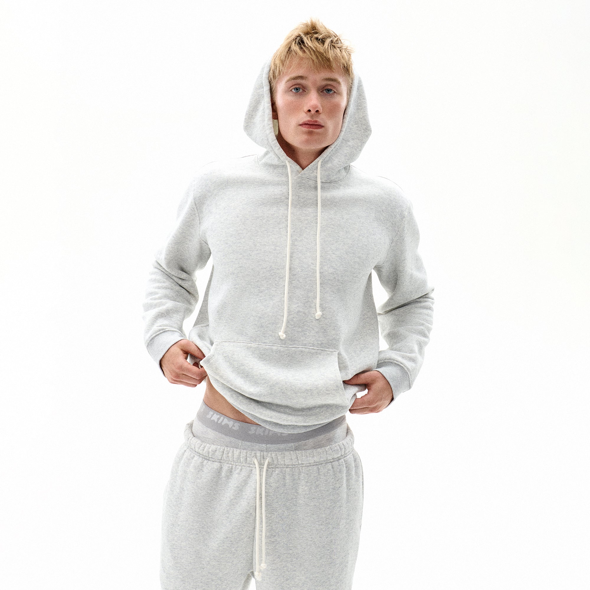 SKIMS FLEECE LOUNGE MENS CLASSIC HOODIE | LIGHT HEATHER GREY