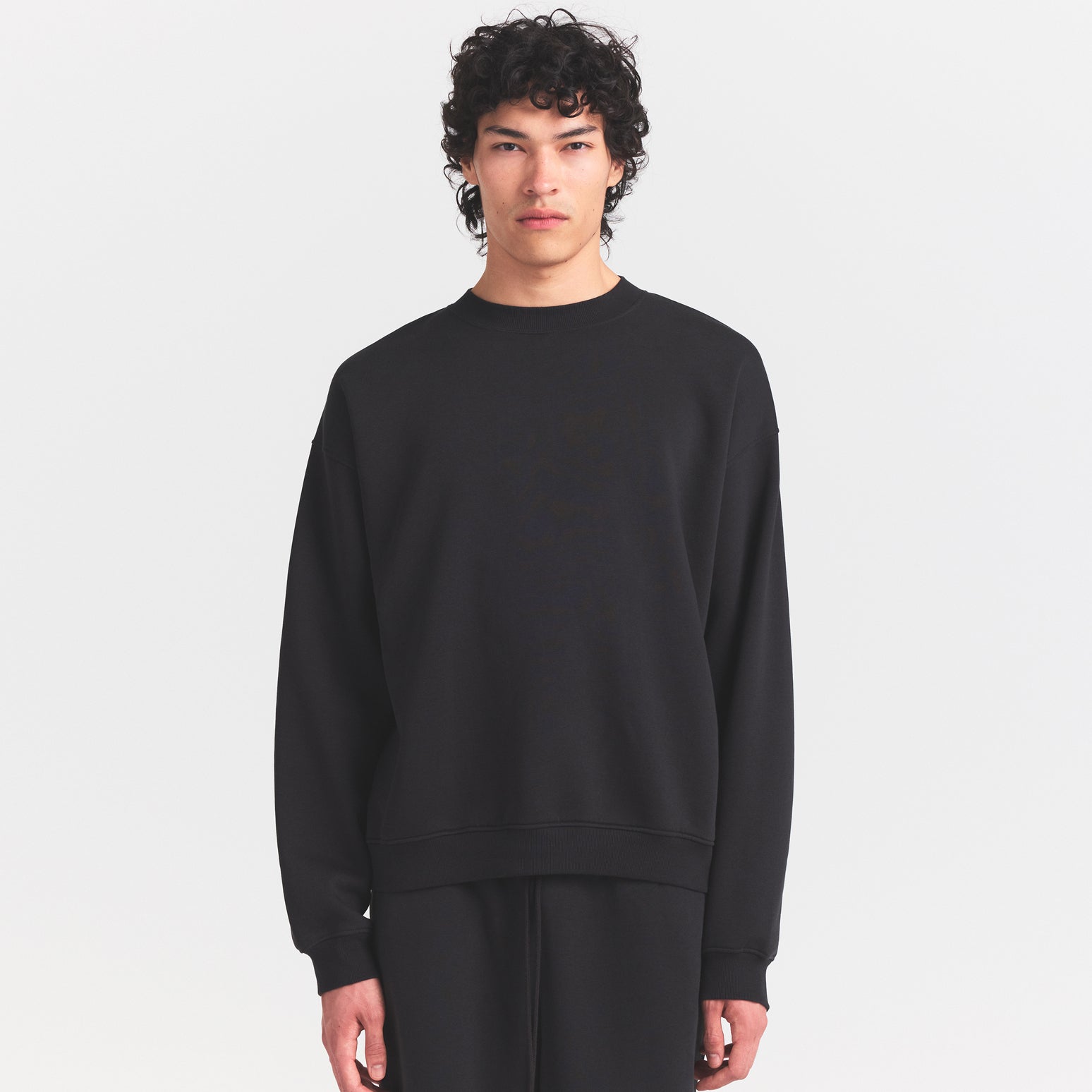 SKIMS FLEECE LOUNGE MENS RELAXED CREWNECK | WASHED ONYX