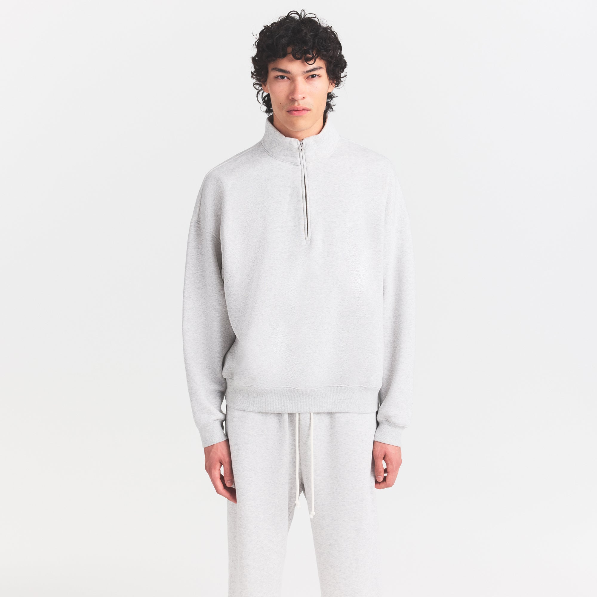 SKIMS FLEECE LOUNGE MENS RELAXED QUARTER ZIP | LIGHT HEATHER GREY
