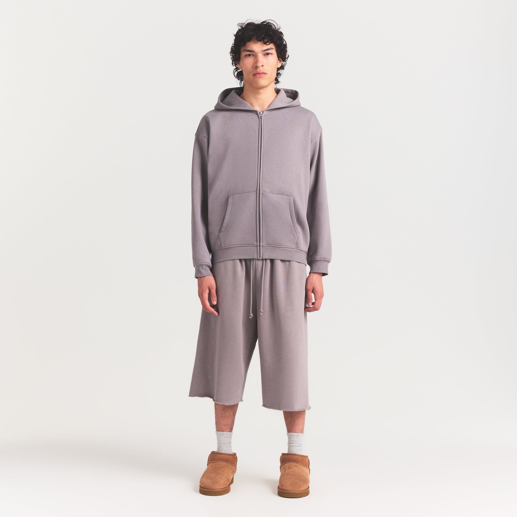 SKIMS FLEECE LOUNGE MENS RELAXED ZIP UP HOODIE | SHADOW