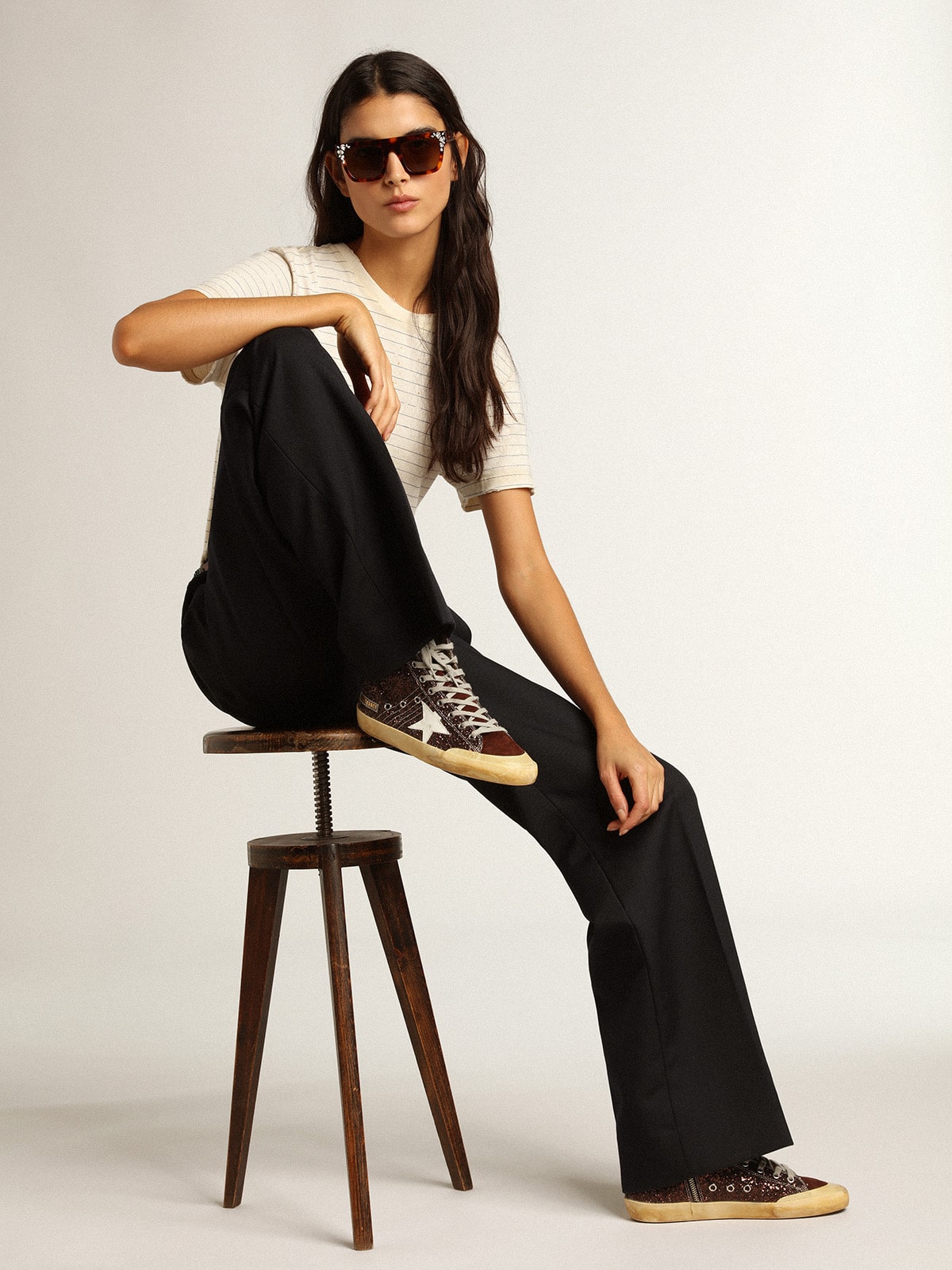 Golden Goose Francy Penstar In Brown Glitter With White Leather Star