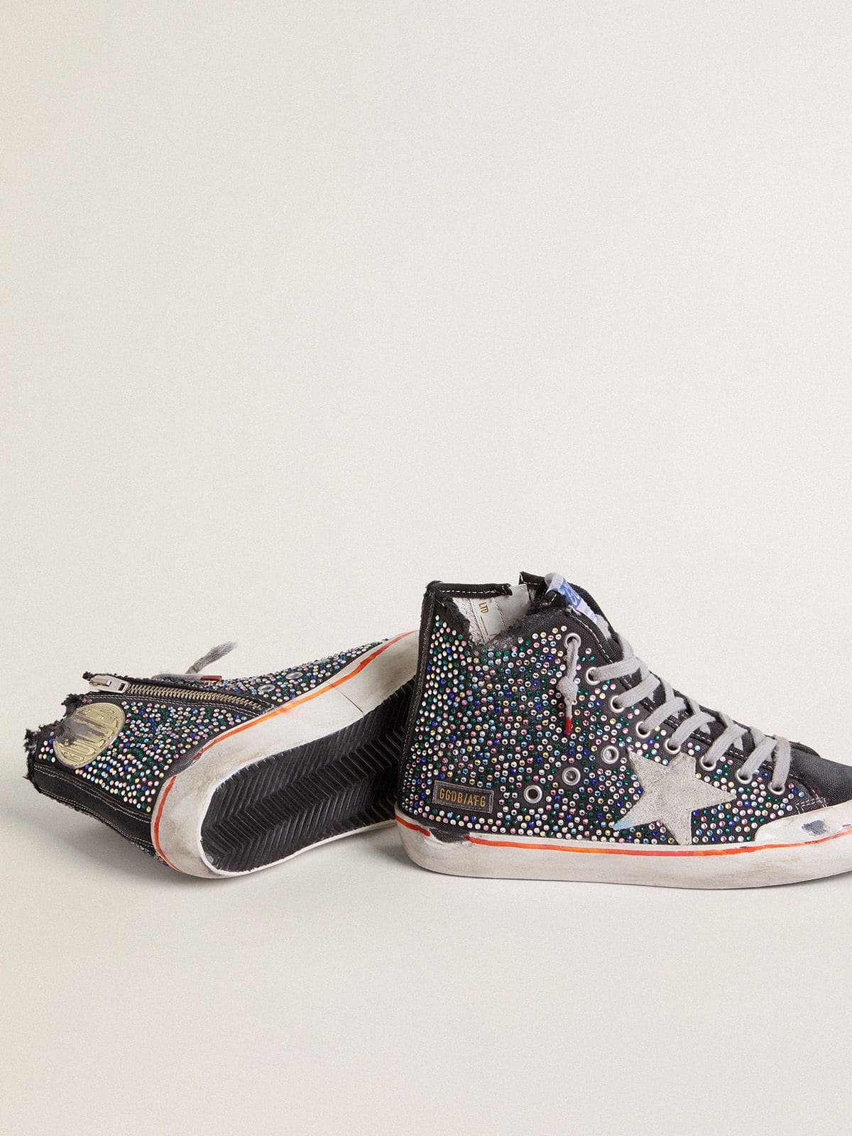Golden Goose Men’s Francy Penstar Lab In Black Canvas With Multicolor Rhinestones