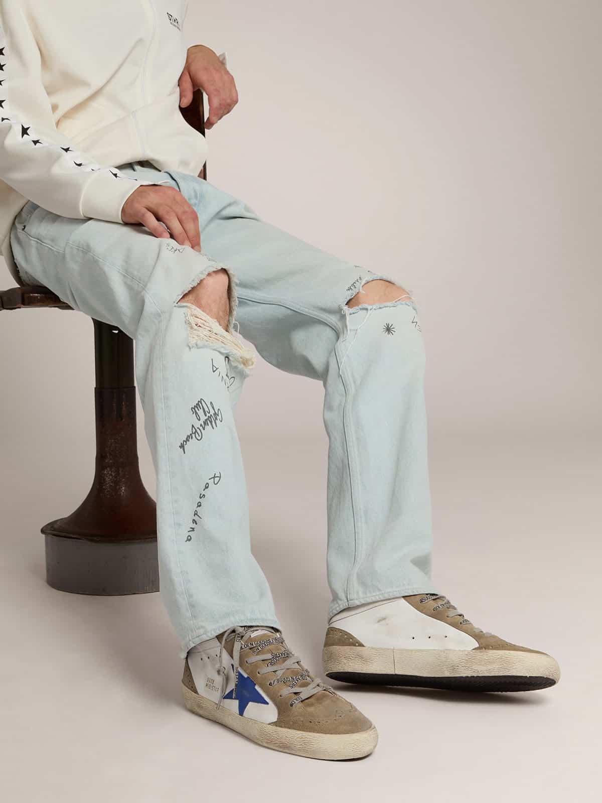 Golden Goose Men’s Mid Star With Blue Leather Star And Dove-Gray Suede Inserts