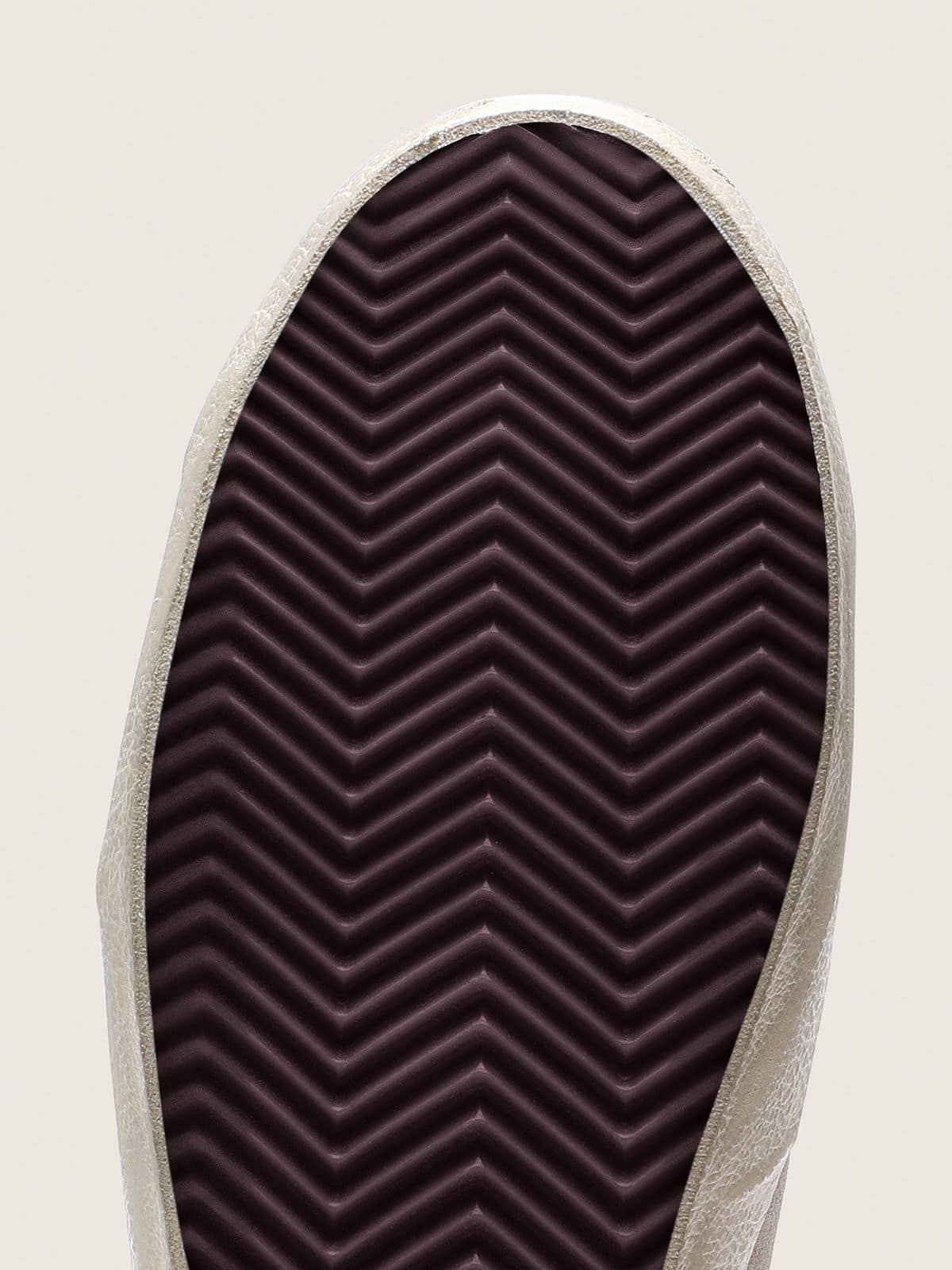 Üst kısmında fildişi süet kullanımı, altın varaklı deri yıldız detayıyla görsel denge sağlar. Bordo-kırmızısı deri topuk detayı, altın metalik deri insert ve krem bağcıklar tasarıma zenginlik katarken iç tabandaki bordo-kırmızısı baskılı çiçek deseni zarif bir estetik sunar. El işçiliği ve malzeme seçimi, estetik ile işlevselliği bir araya getirir.