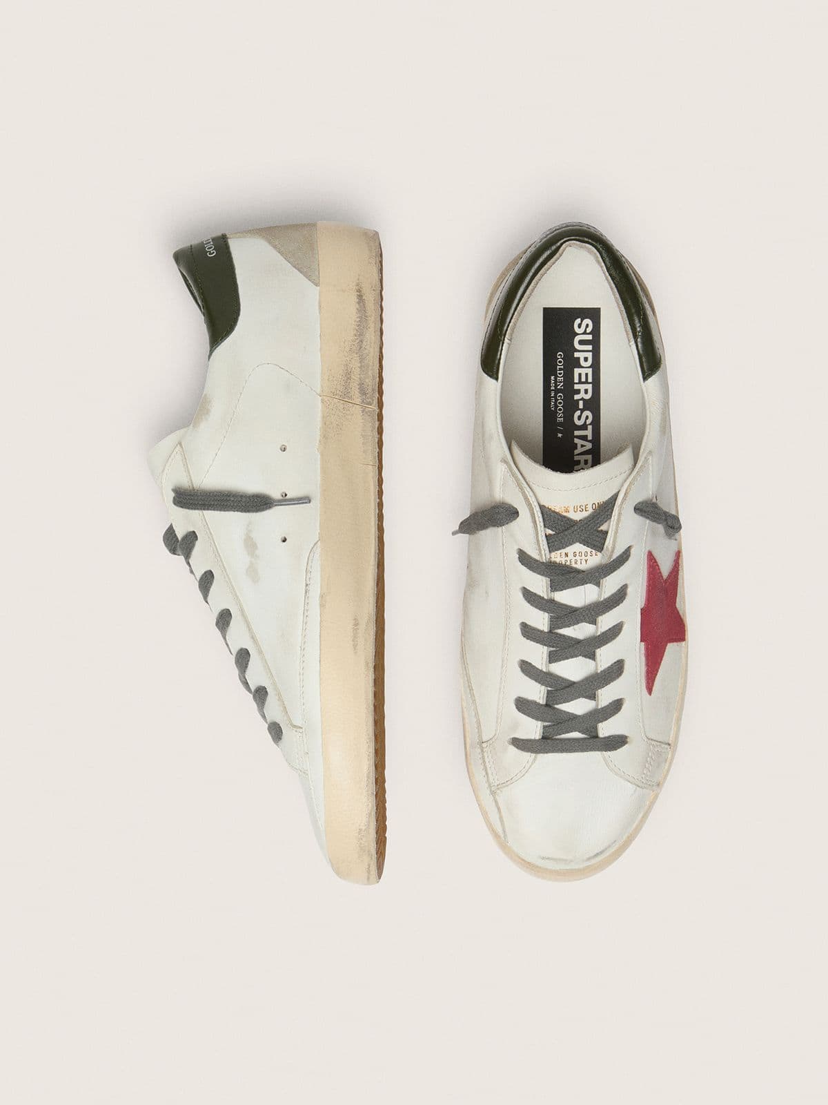 Golden Goose Men’s Super-Star With Red Suede Star And Green Leather Heel Tab