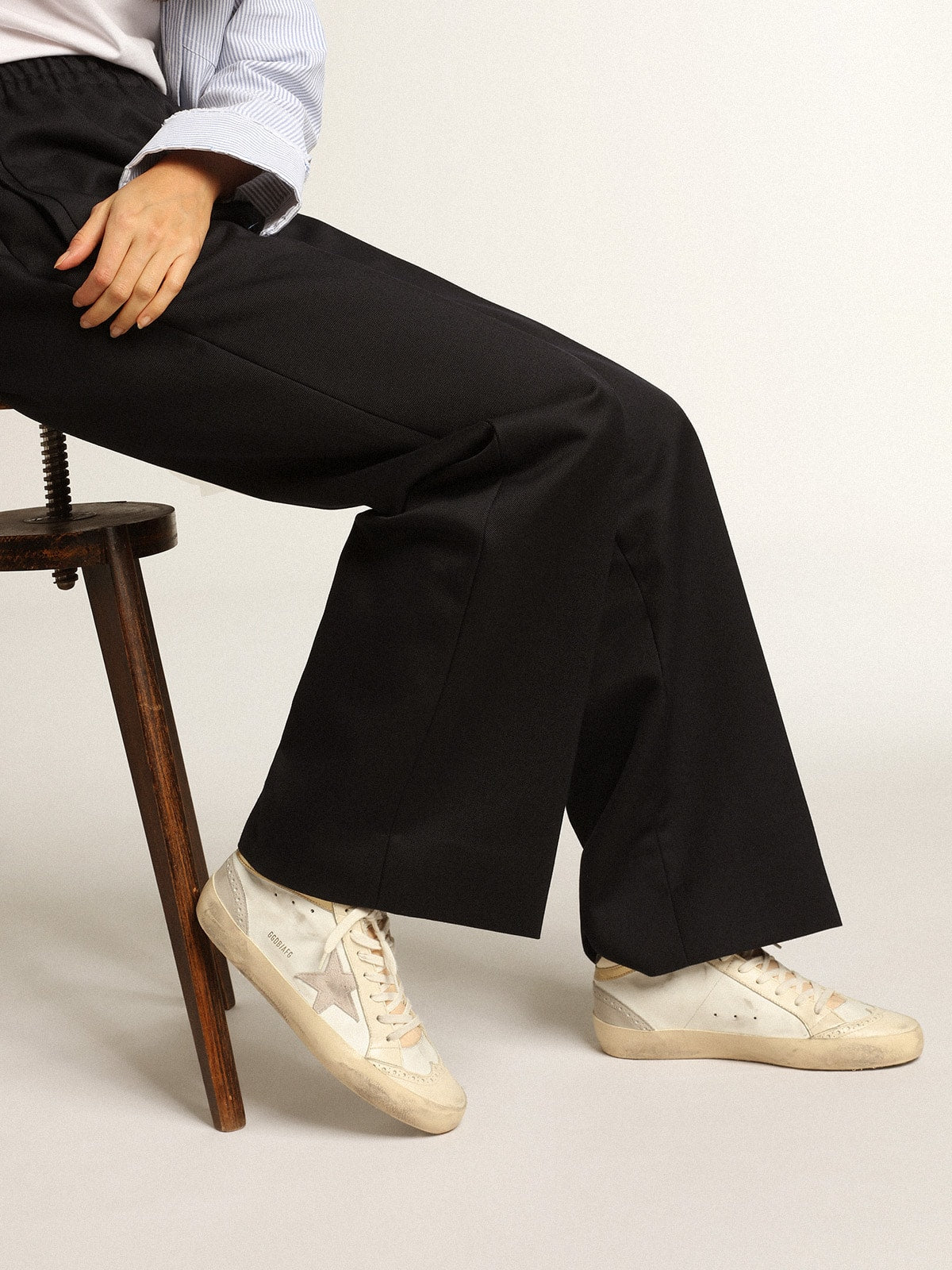 GWF00123.F003018.11116 model numaralı bu ayakkabı, beyaz ve fildişi tonlarında zarif bir spor-şık tasarım sunar. El işçiliğiyle İtalya'da üretilmiş olup, detaylardaki vintage dokunuşlarla estetik ve kaliteyi bir arada verir.