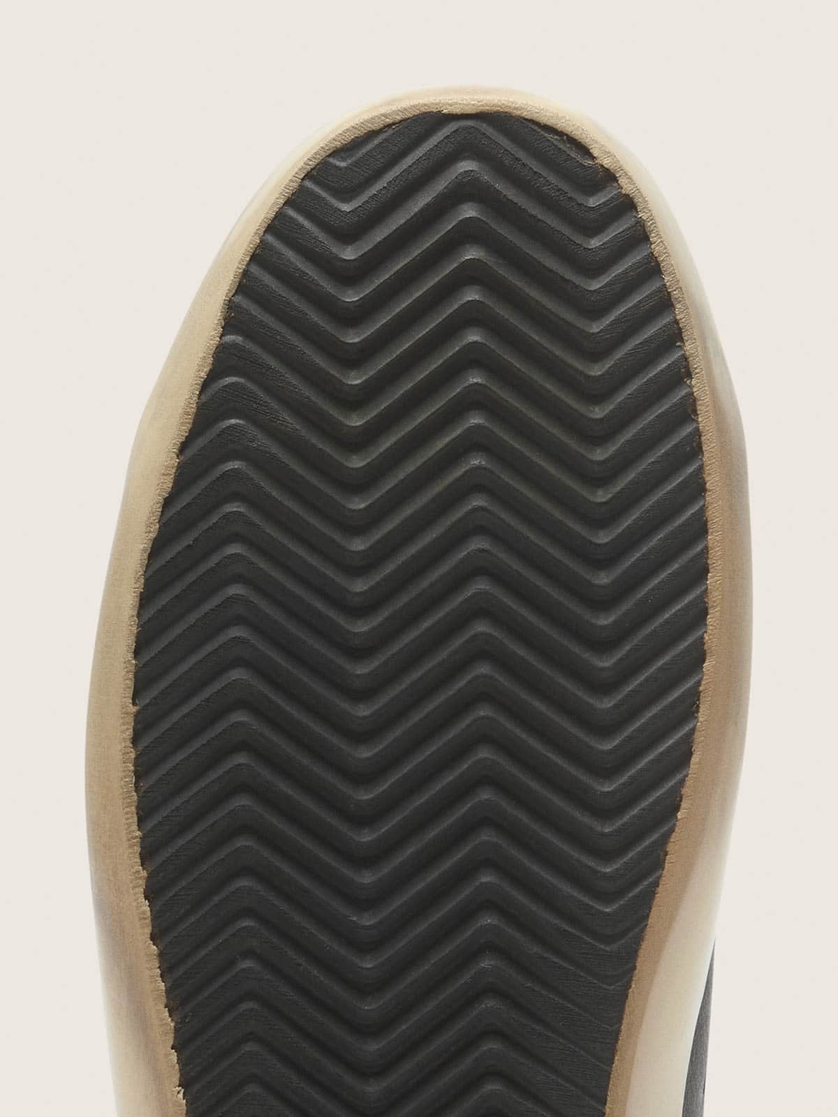 Siyah nappa deri üst kısım, siyah süet yıldız detayı ve siyah simli topuk tabı ile dengeli bir görsel kompozisyon oluşturur. İç astarı deri ve pamuk karışımı olan model, kaliteli malzeme seçimi ve vintage finisajıyla el işçiliğinin izlerini taşır. Tamamen elle üretilmiş olması, her parçanın detayına gösterilen özeni yansıtır.