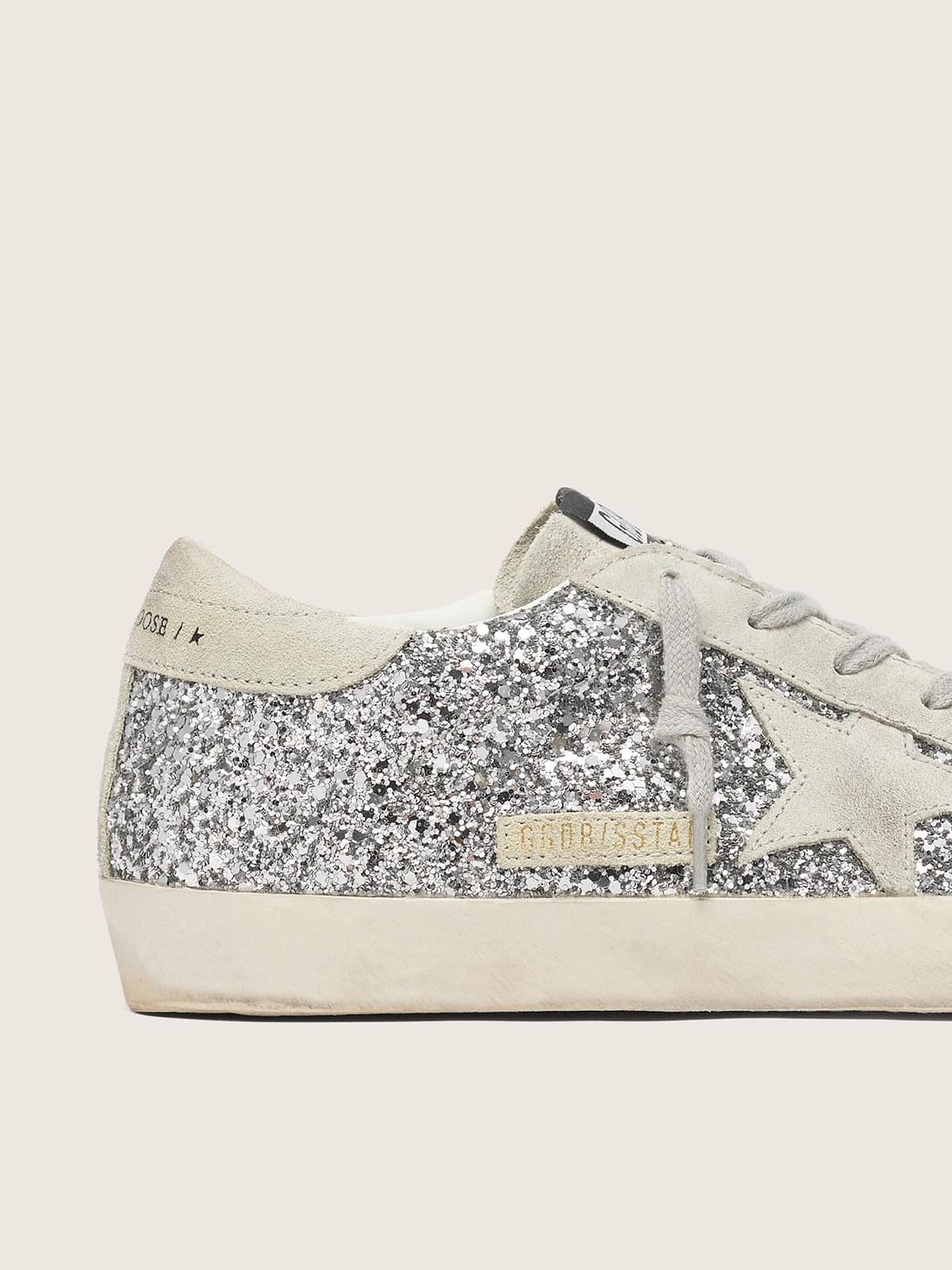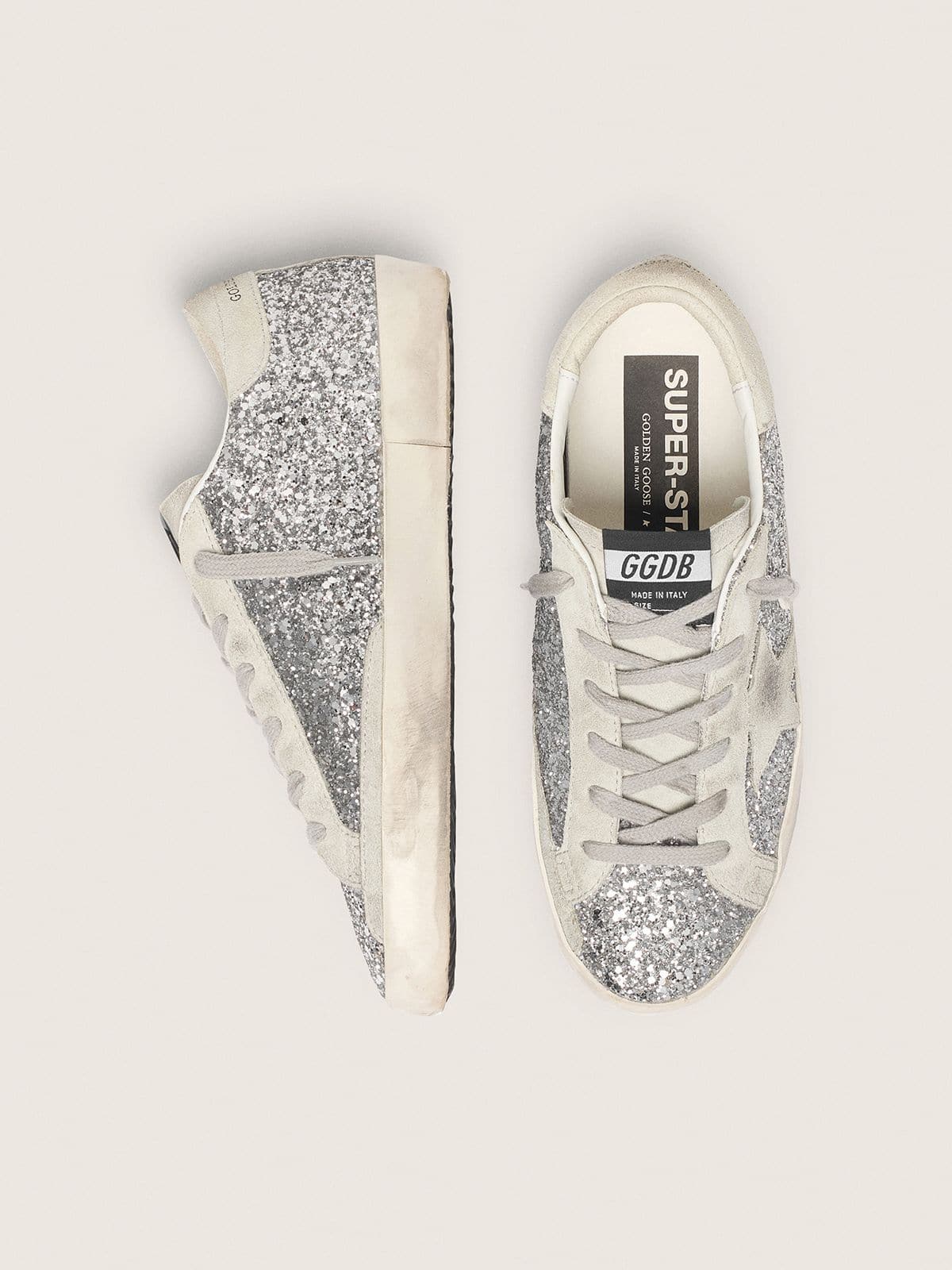 Golden Goose Women’s Super-Star In Silver Glitter With Ice-Gray Suede Star