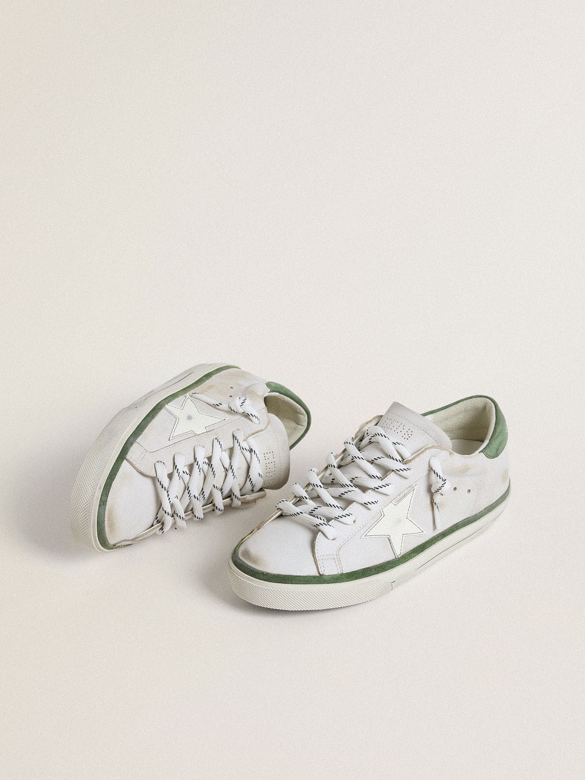 Golden Goose Women’s Super-Star LTD With White Leather Star And Green Suede Heel Tab