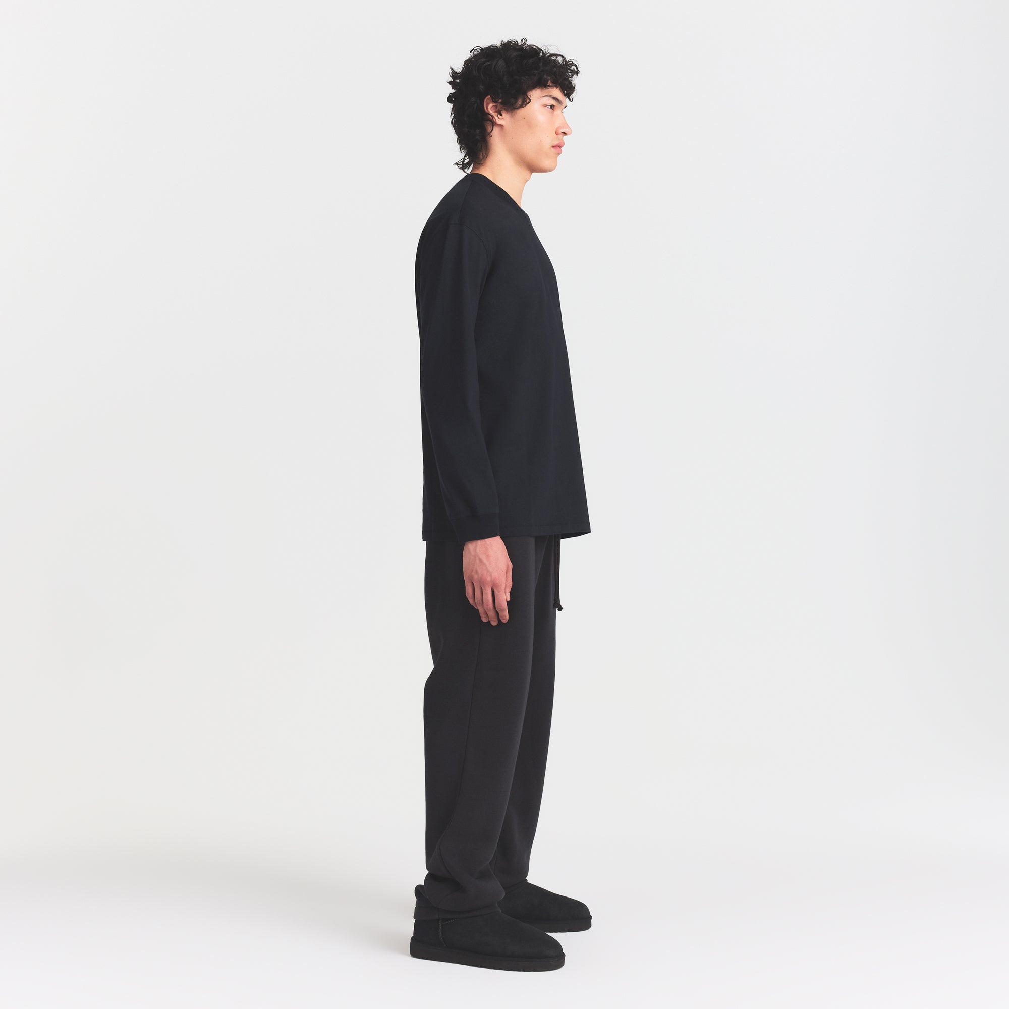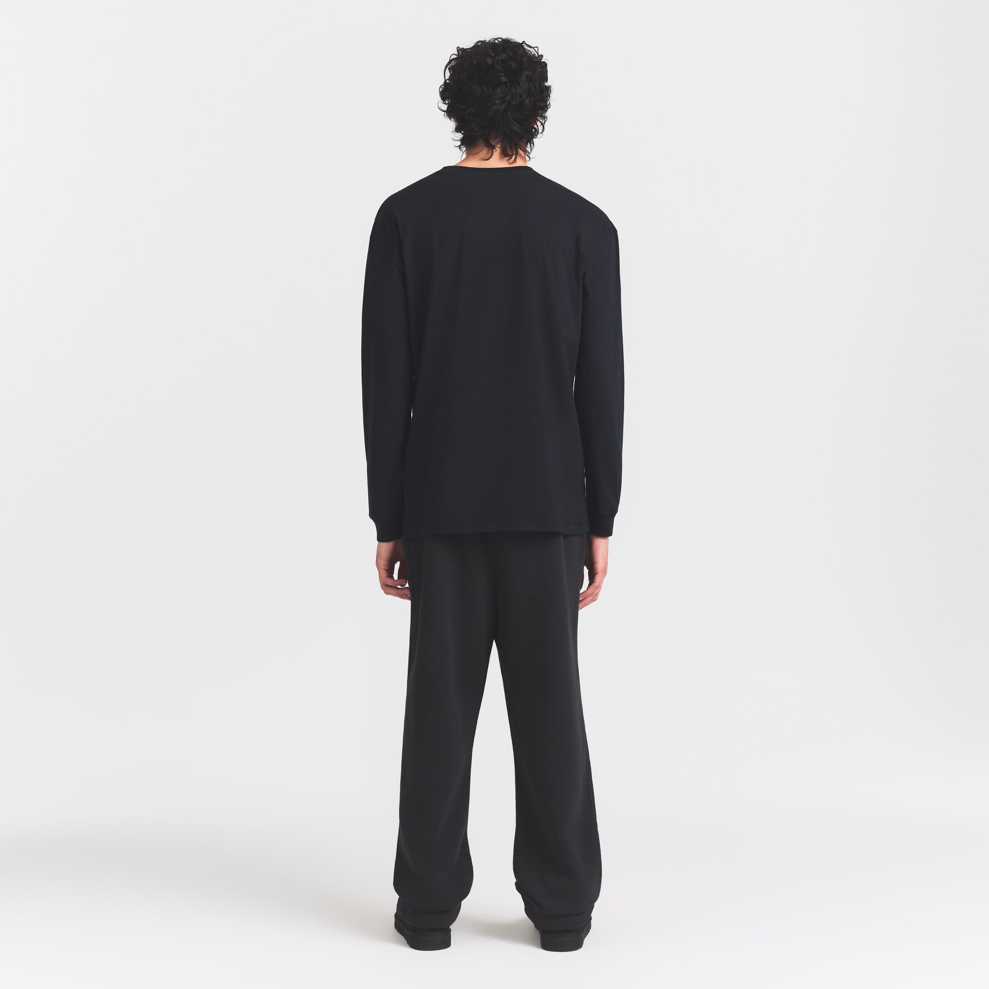 SKIMS HEAVYWEIGHT COTTON MENS RELAXED LONG SLEEVE T-SHIRT | OBSIDIAN