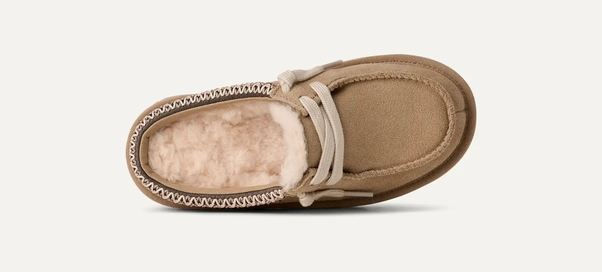 Üst kısmı süet olan Tasman Mule, %100 geri dönüştürülmüş polyester liflerden üretilmiş UGGbraid detayıyla zenginleştirilmiştir. Sorumlu pamuk ipleri ve çevre dostu malzemelerle tasarlanmış bu ürün, estetik dengesiyle de göz dolduruyor.