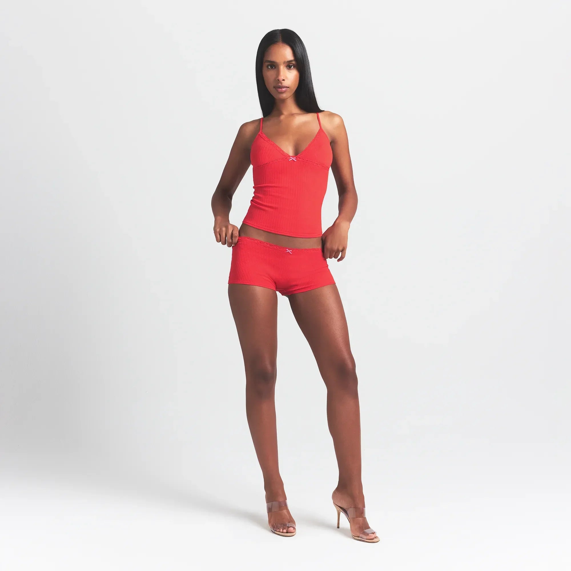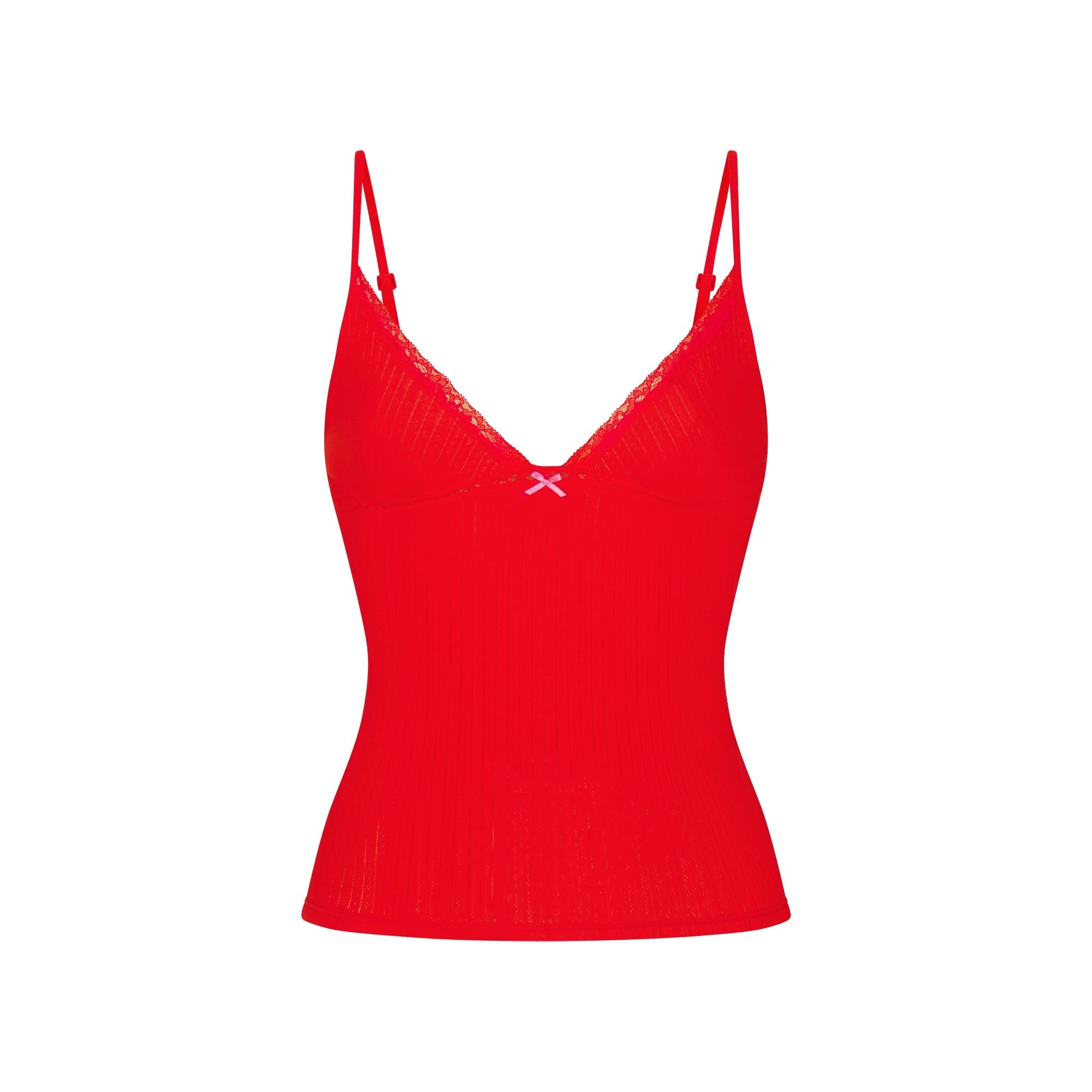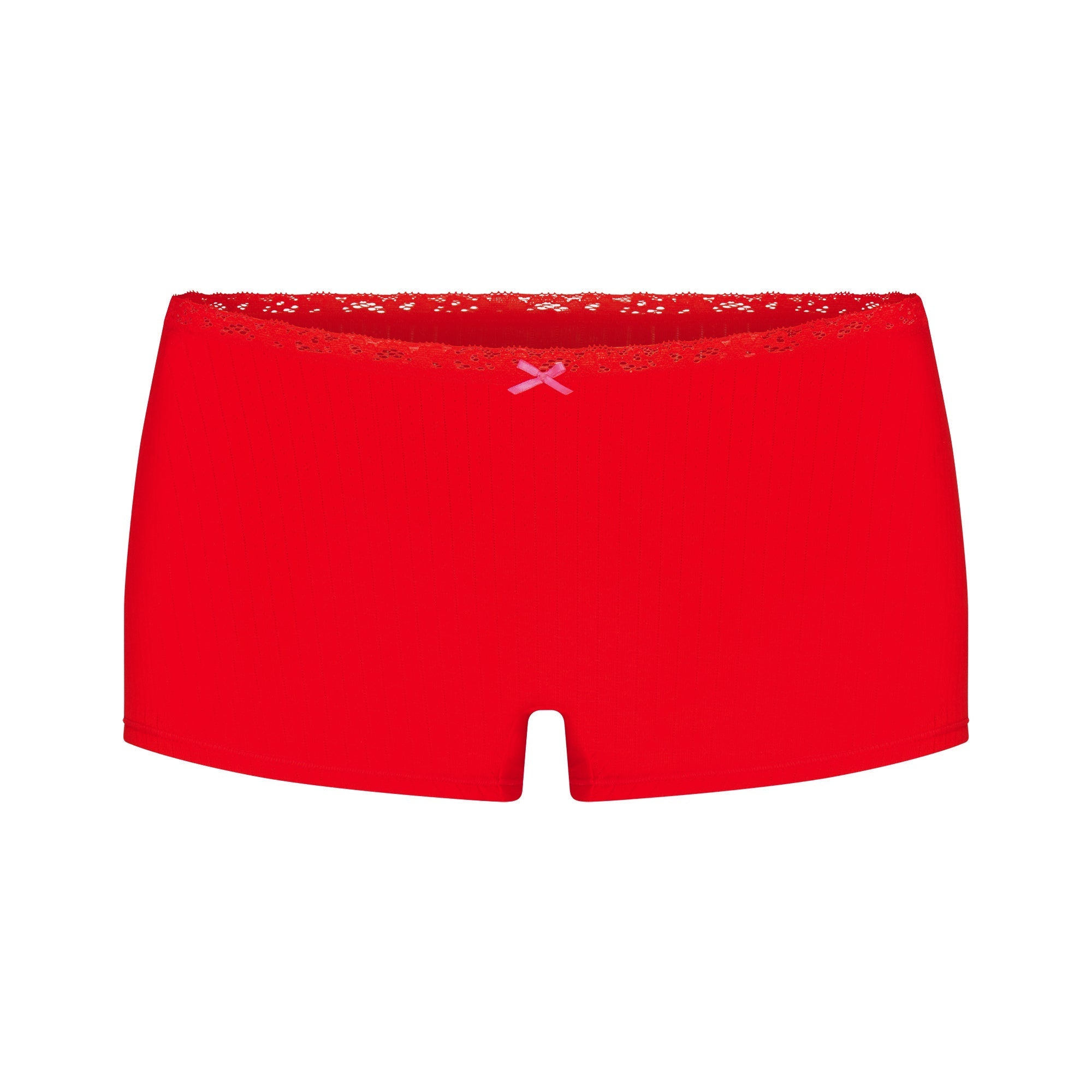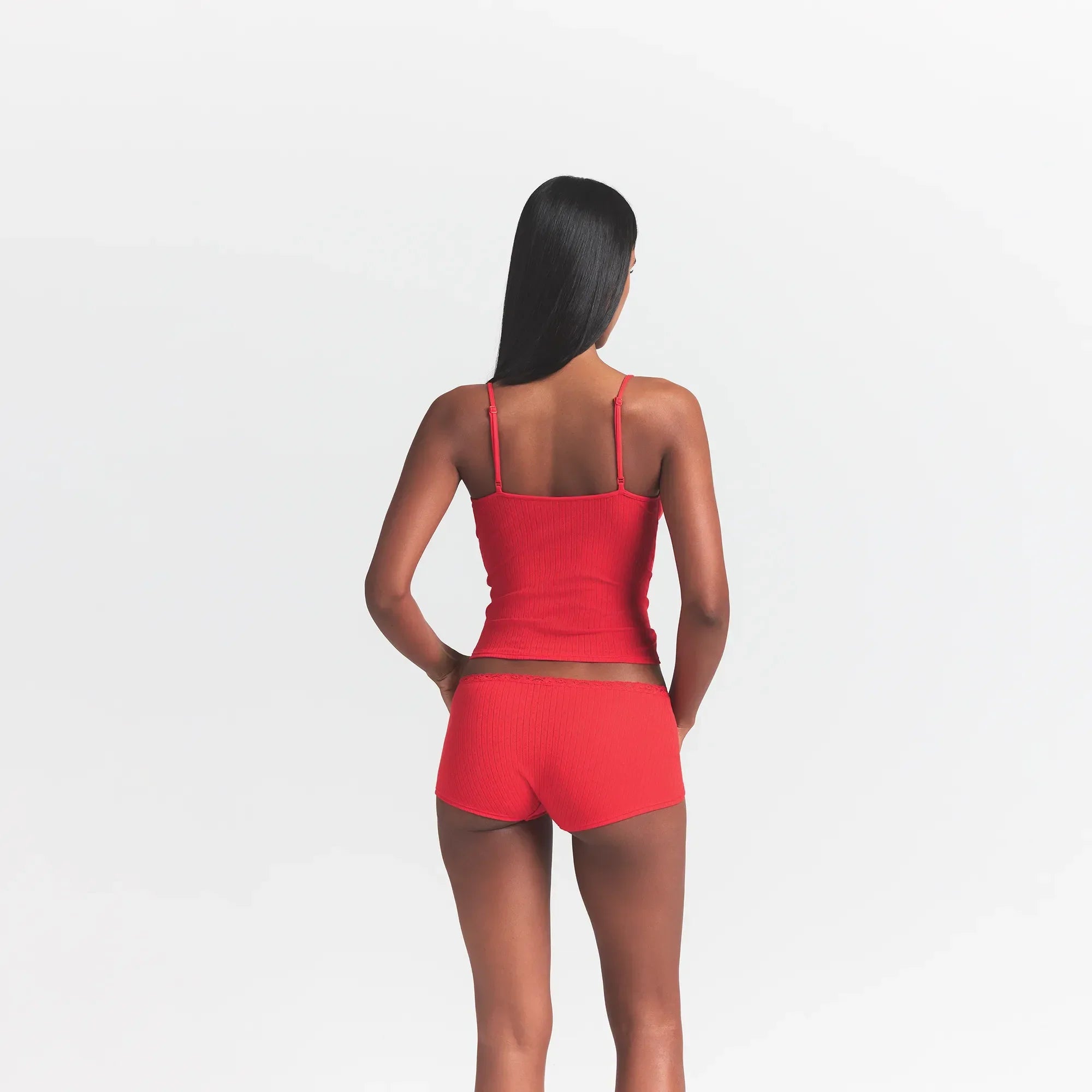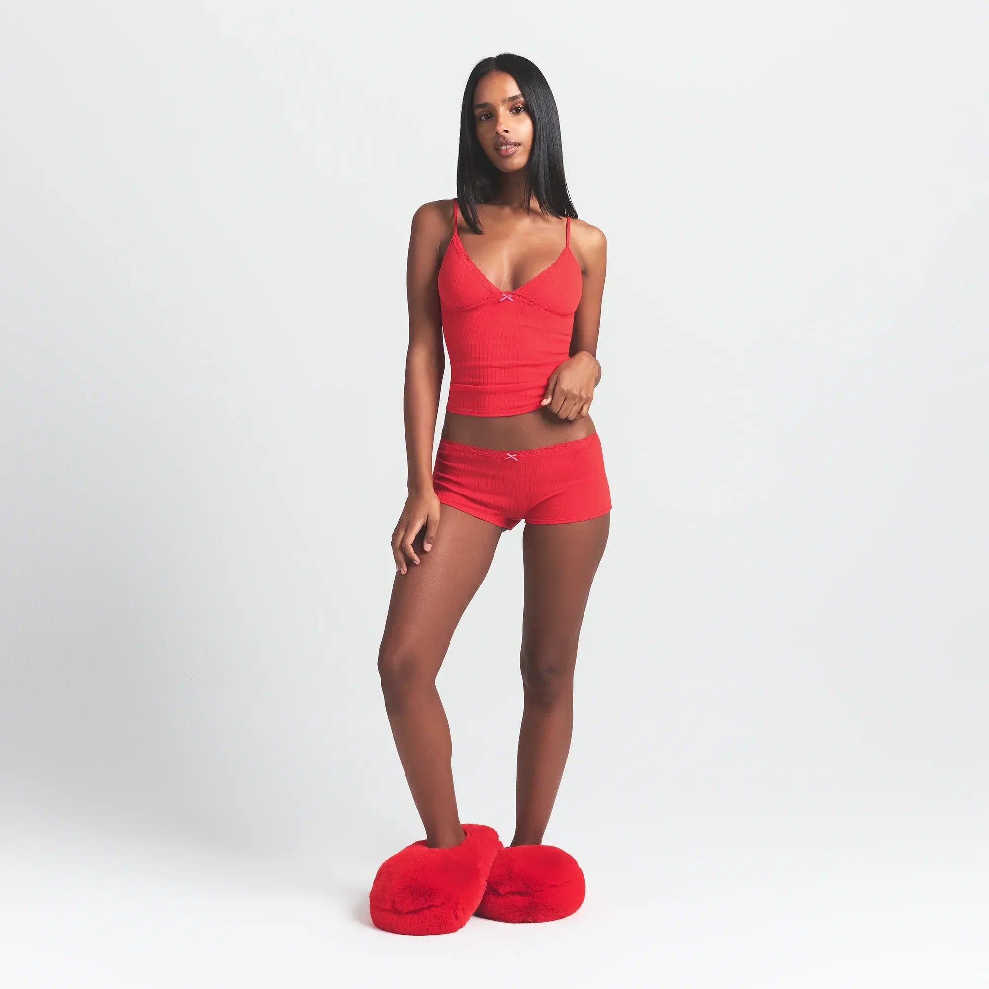 SKIMS LIGHTWEIGHT COTTON POINTELLE LACE CAMI AND BOY SHORT SET | RUBY TONAL