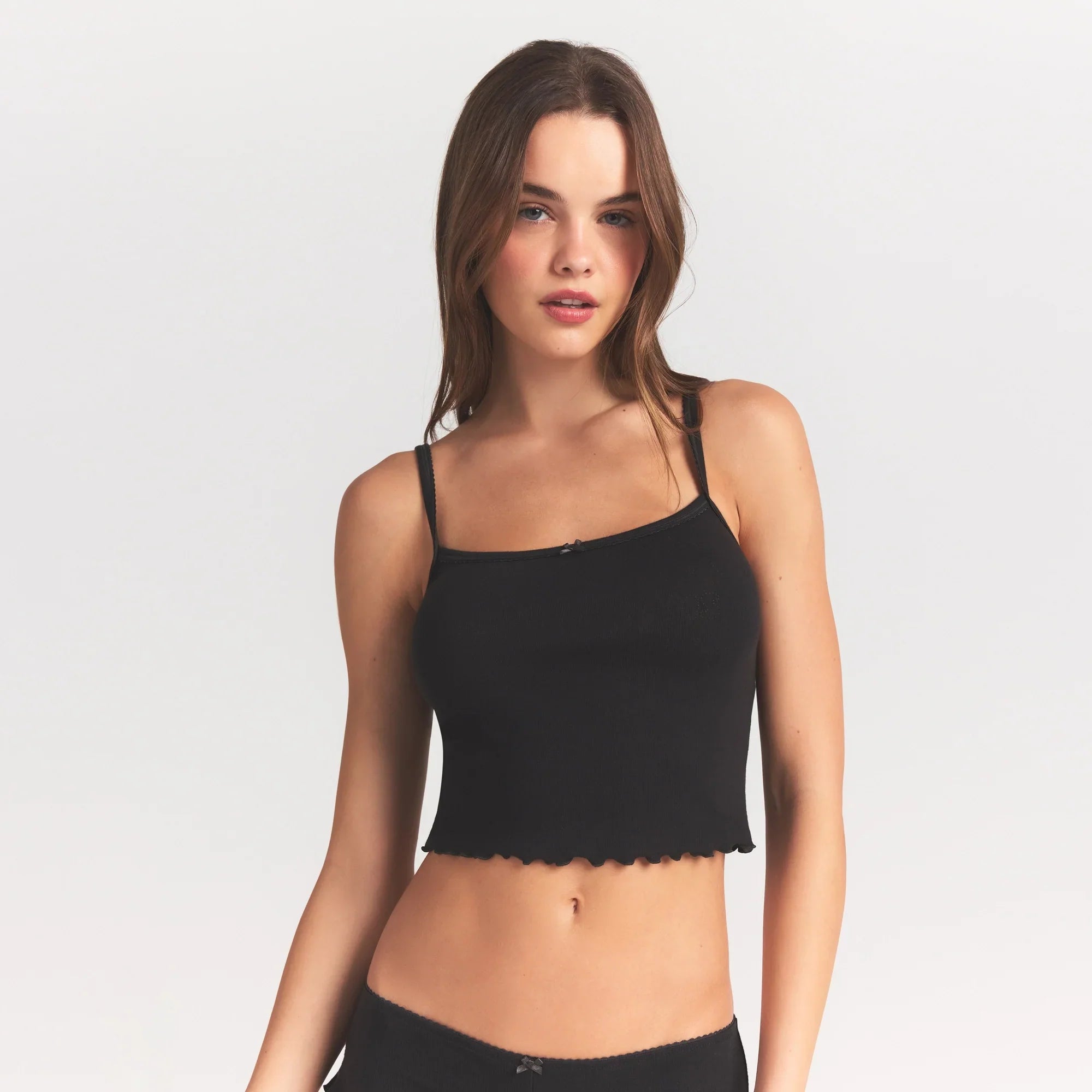 SKIMS LOGO POINTELLE CAMI SLEEP SET | SOOT
