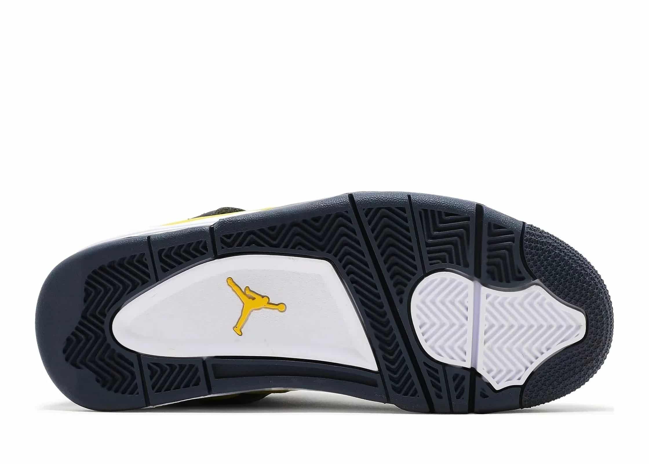 Air Jordan 4 Retro Lightning 2021 GS, estetik dengeyi mükemmel bir şekilde yakalayan detaylarla donatılmıştır. Siyah kalıplı delikler ve uyumlu siyah ağlar, ayakkabının dinamik görünümünü desteklerken, koyu gri vurgular zarif bir kontrast oluşturur.