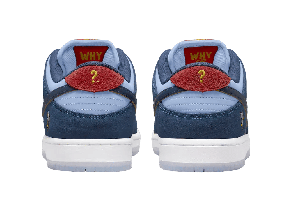 Nike SB Dunk Low Pro Why So Sad, kıyı mavisi ve açık mavinin göz alıcı tonlarıyla dikkat çekiyor. Bu özel tasarım, kaykay kültürünün ikonik unsurlarını modern bir estetikle bir araya getiriyor.