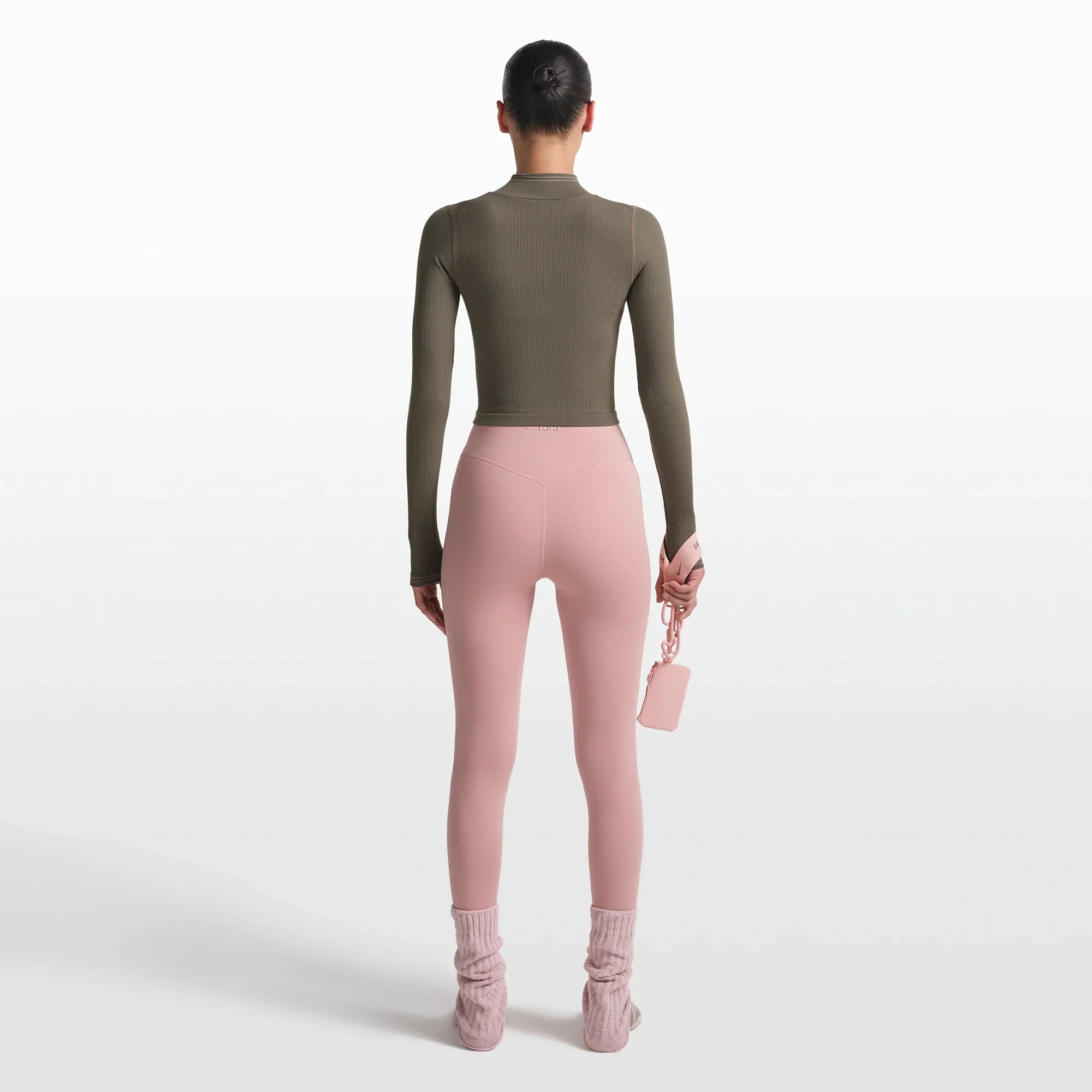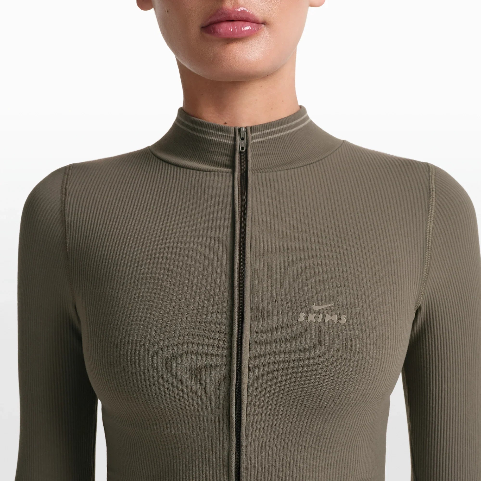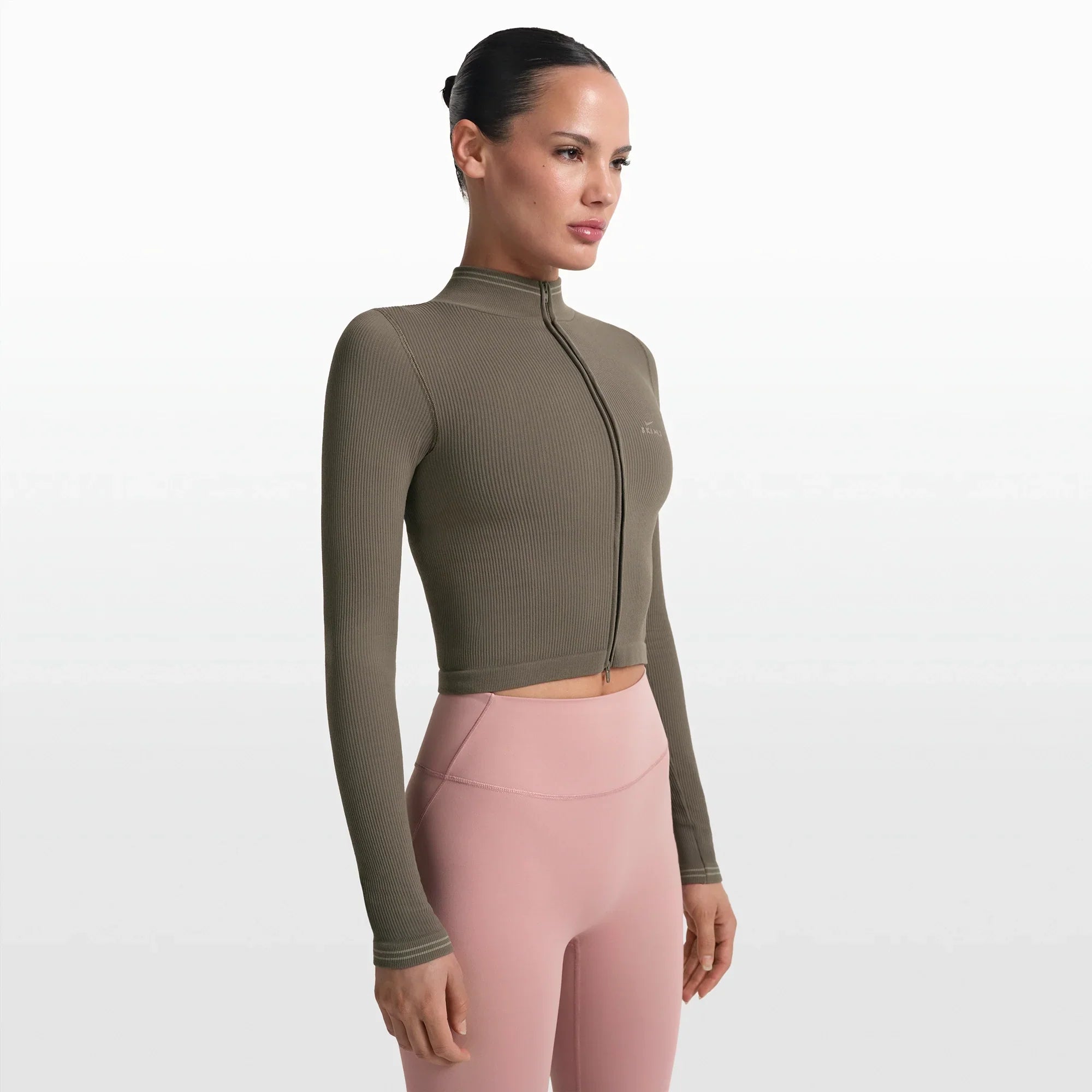 NikeSKIMS RIBBED SEAMLESS ZIP UP CROP JACKET | DUSTY OAKMOSS