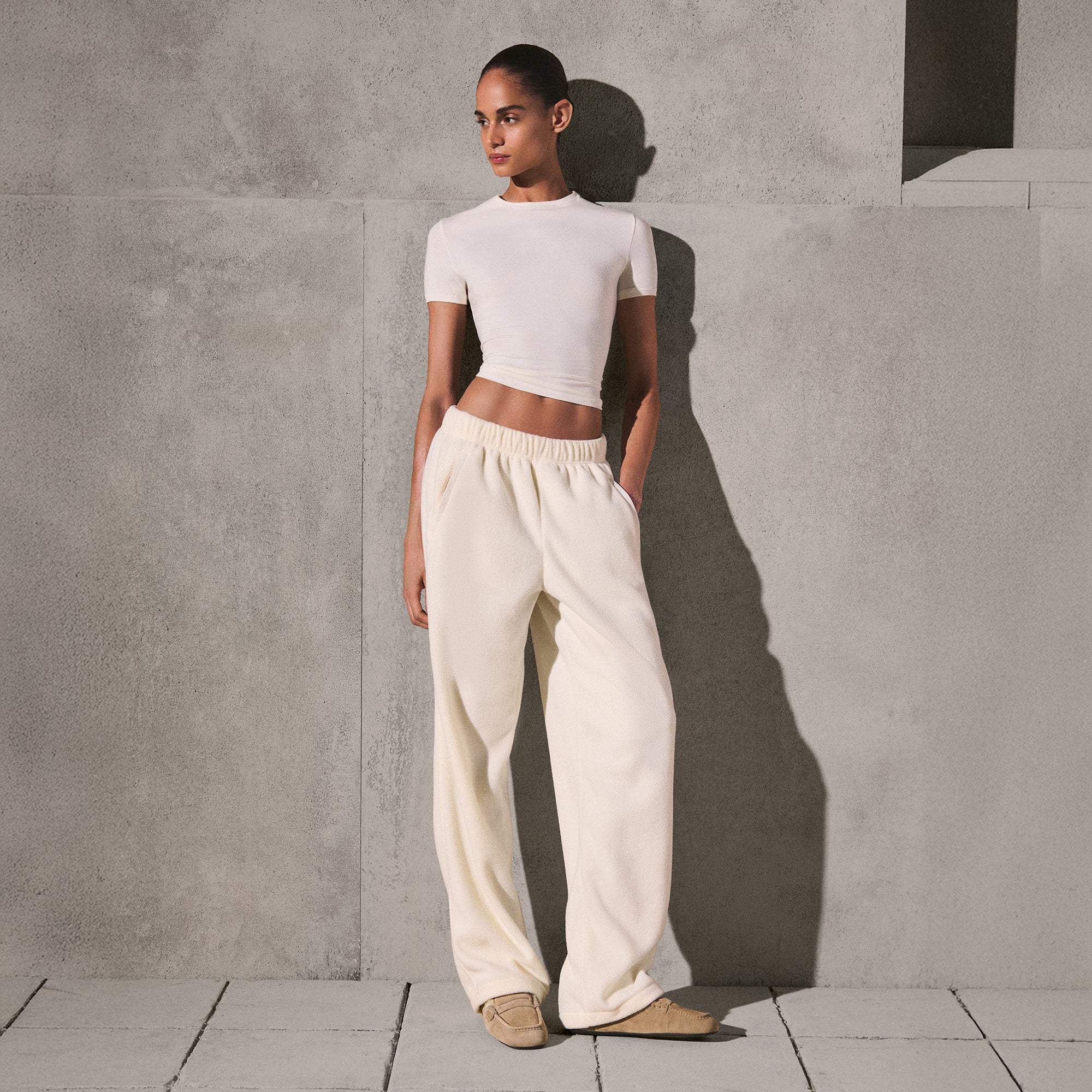 SKIMS OUTDOOR FLEECE STRAIGHT LEG PANT | ECRU