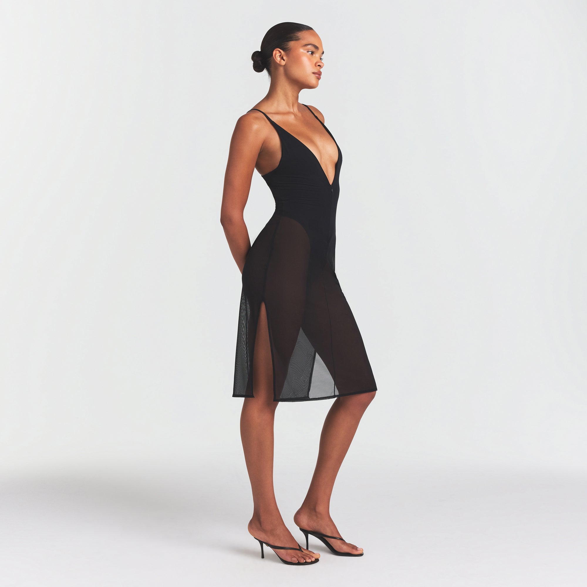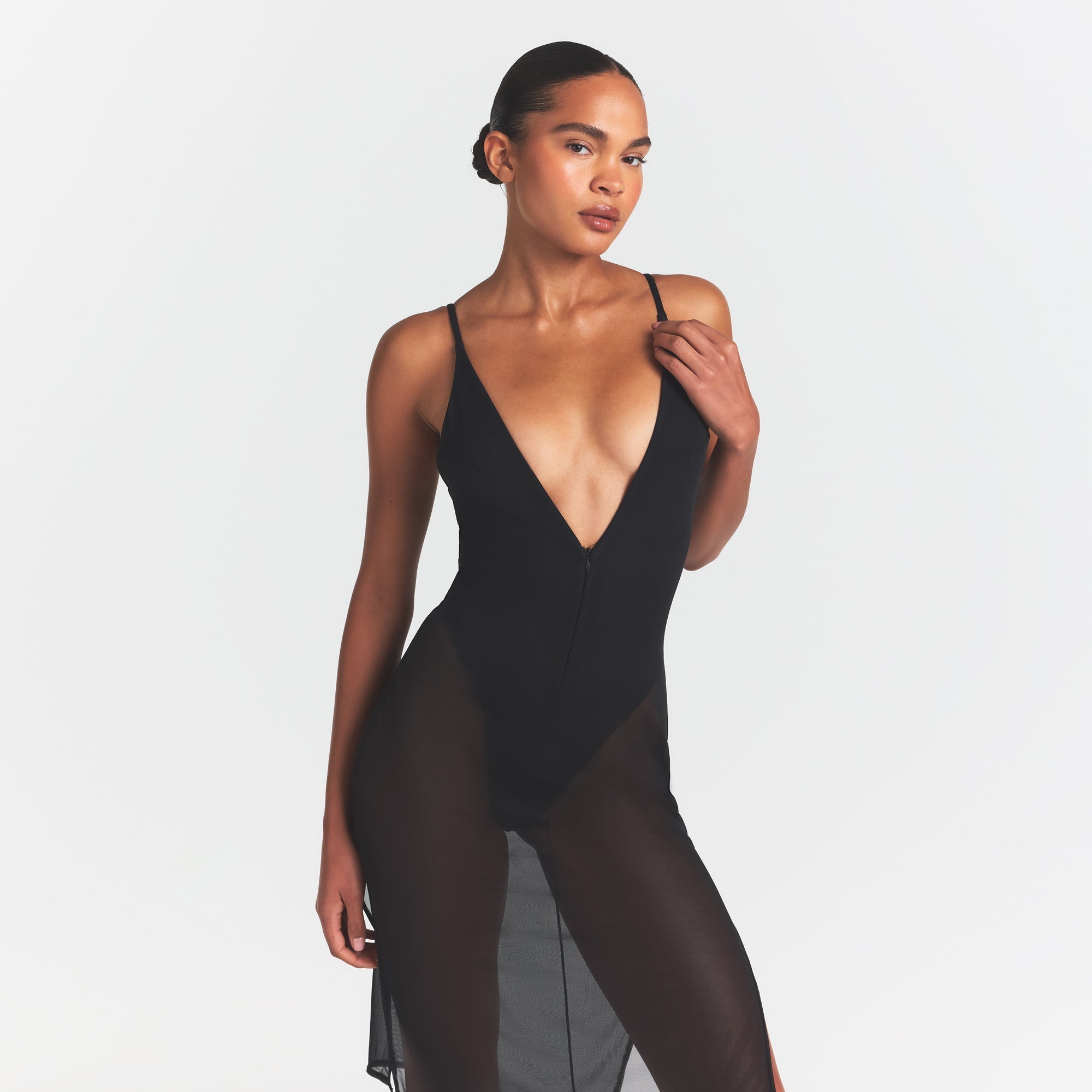 SKIMS BODY MESH PLUNGE MIDI DRESS | ONYX