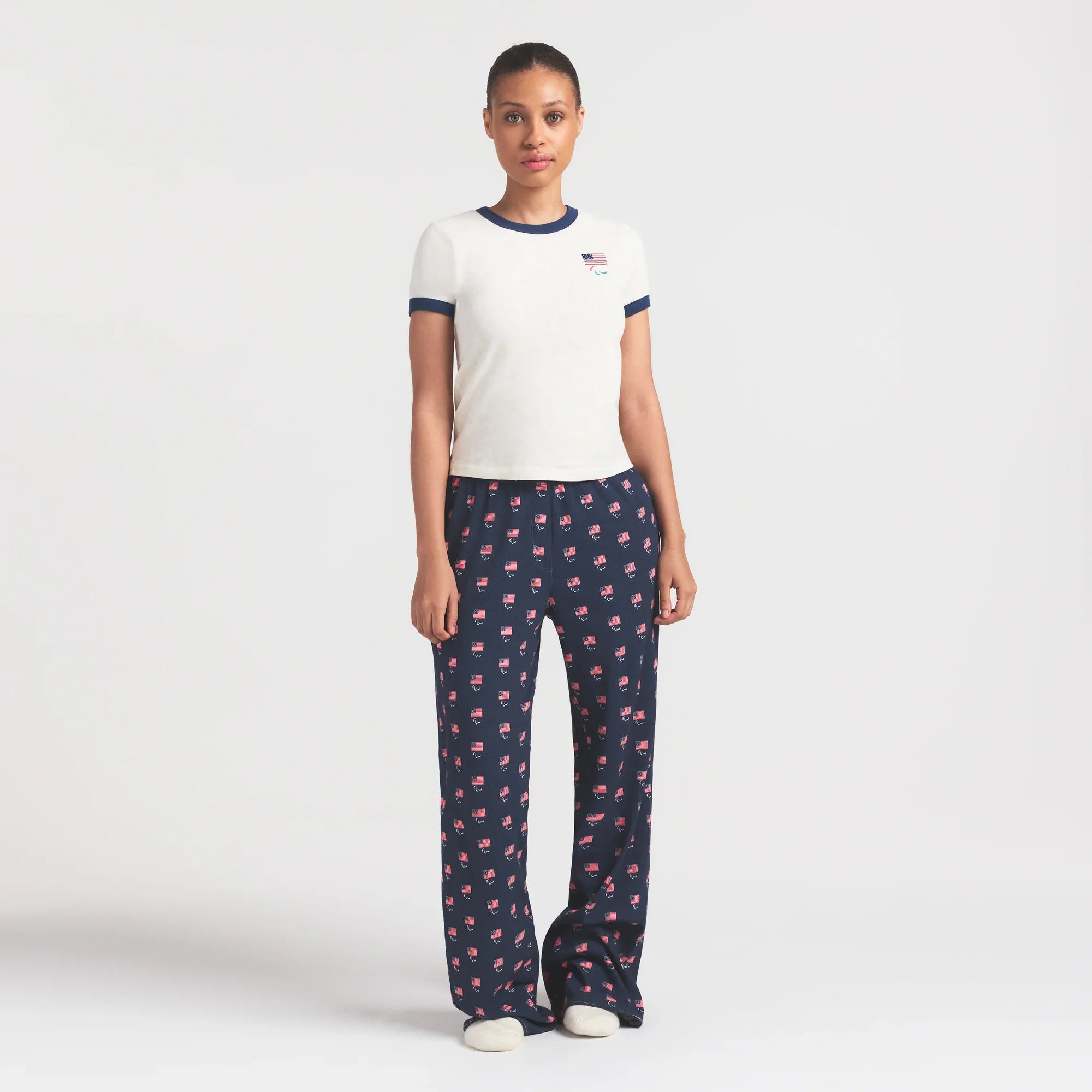 SKIMS FOR TEAM USA WORN IN JERSEY PARALYMPIC SHRUNKEN T-SHIRT | ECRU