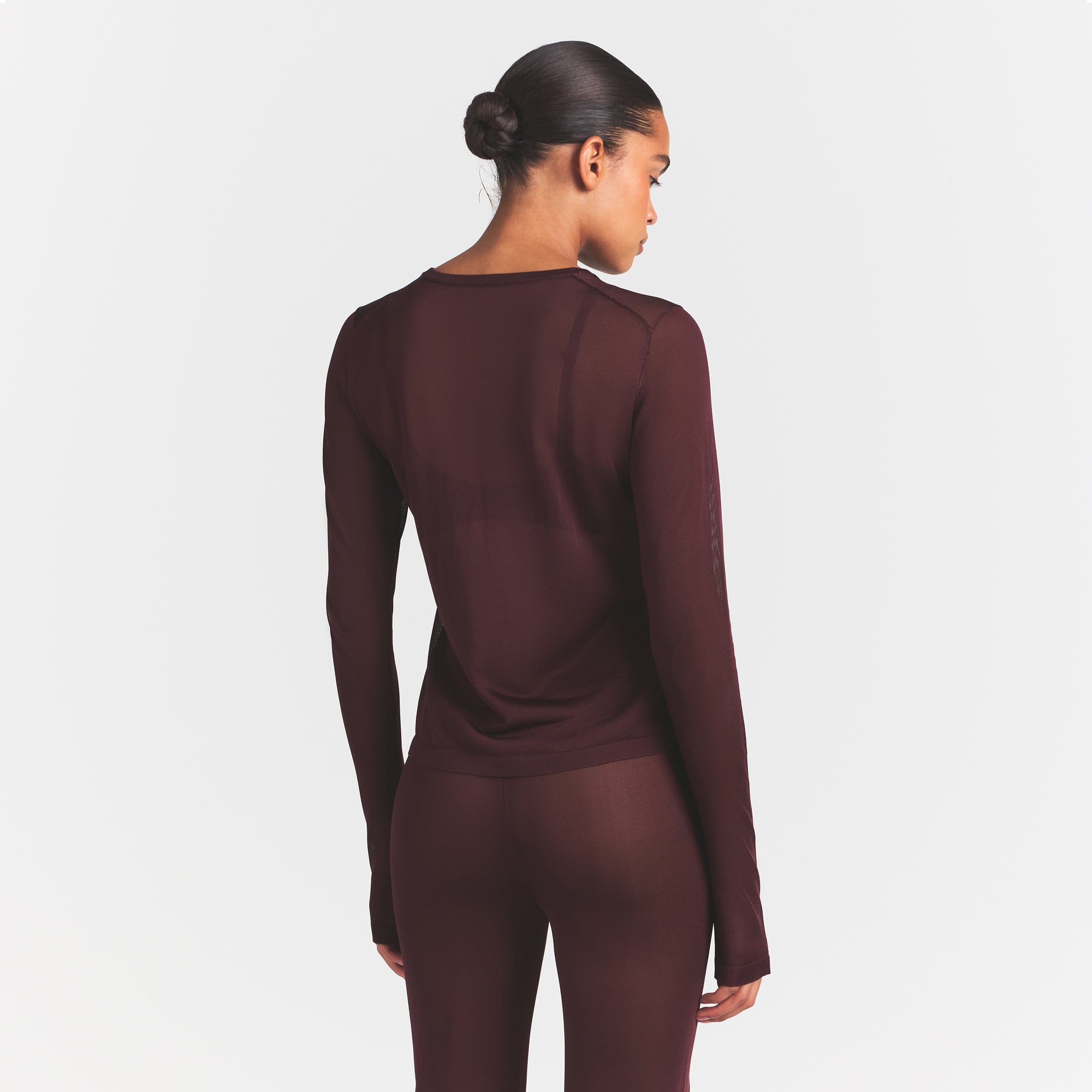 SKIMS SLINKY KNIT CREW NECK LONG SLEEVE TOP | CURRANT