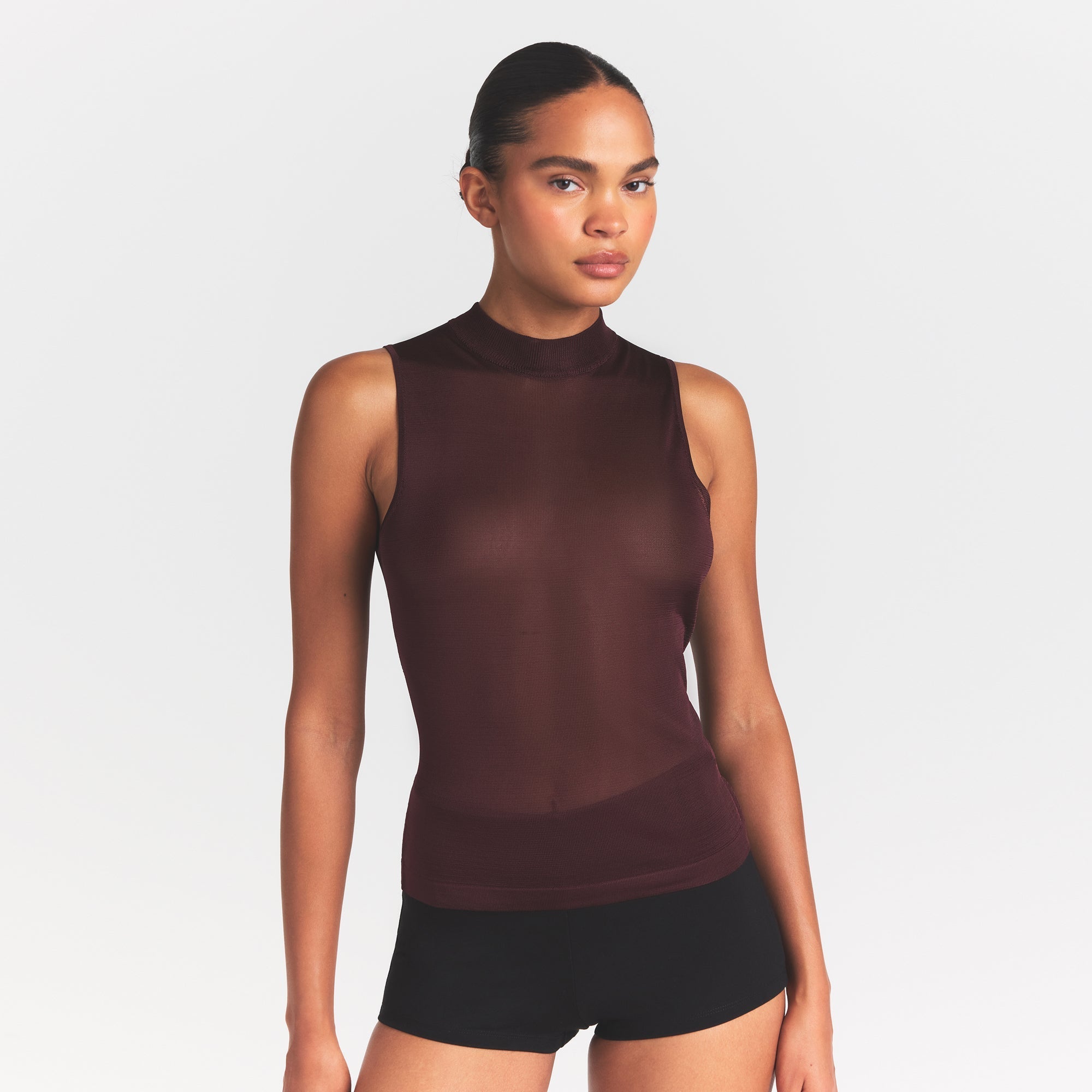 SKIMS SLINKY KNIT MOCK NECK TANK | CURRANT