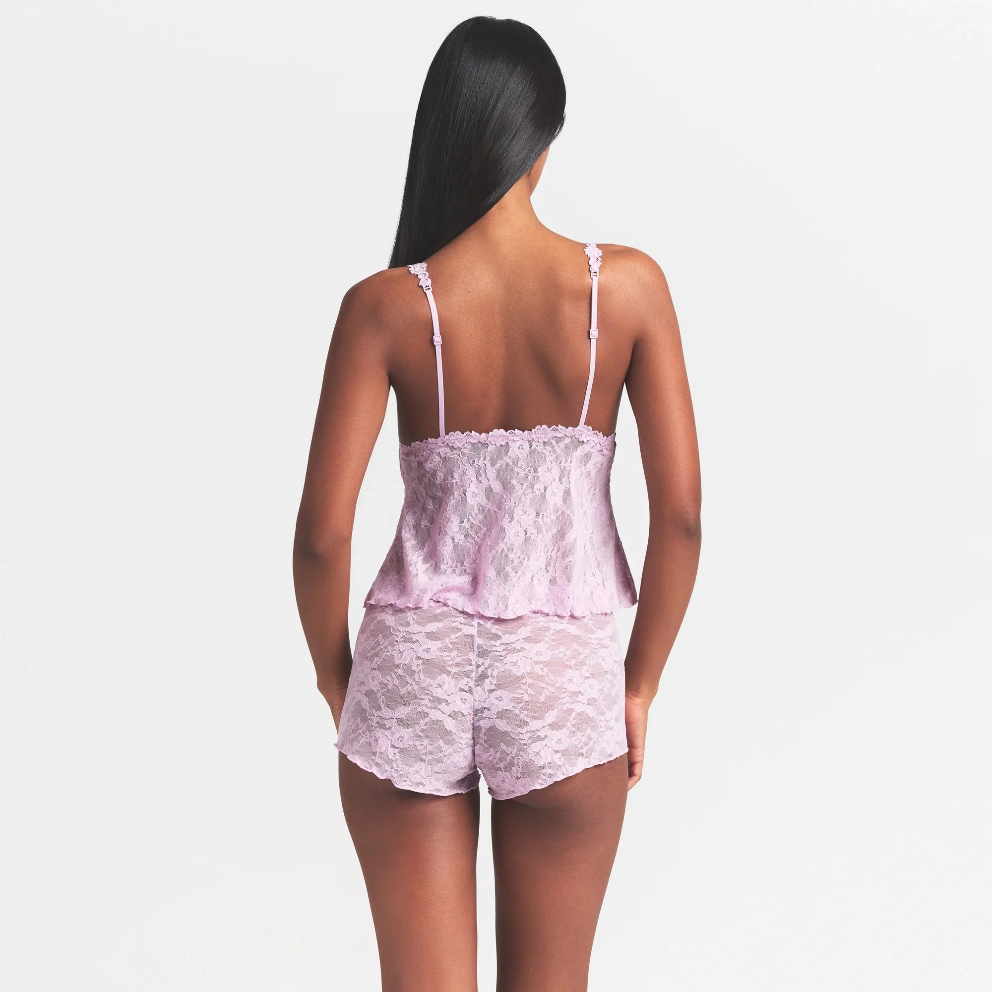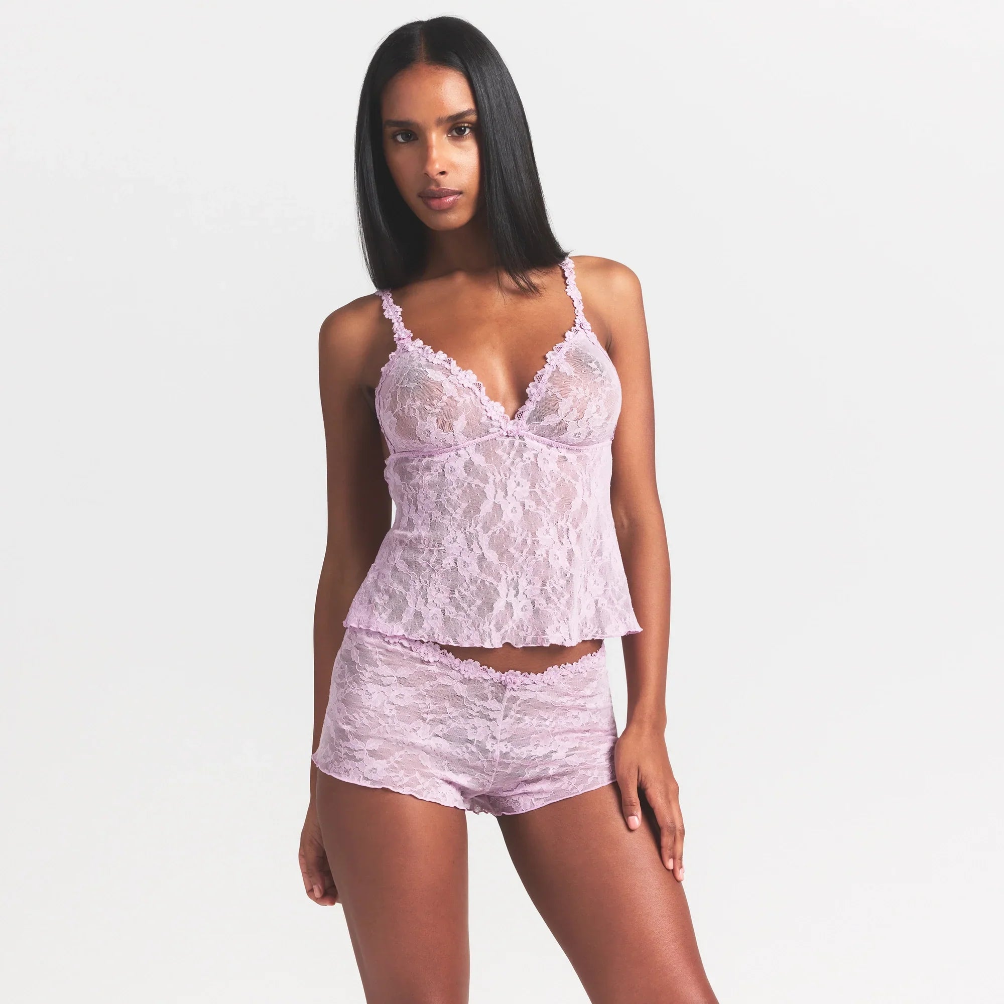 SKIMS STRETCH LACE TRIANGLE CAMI AND SHORT SET | BABY PINK