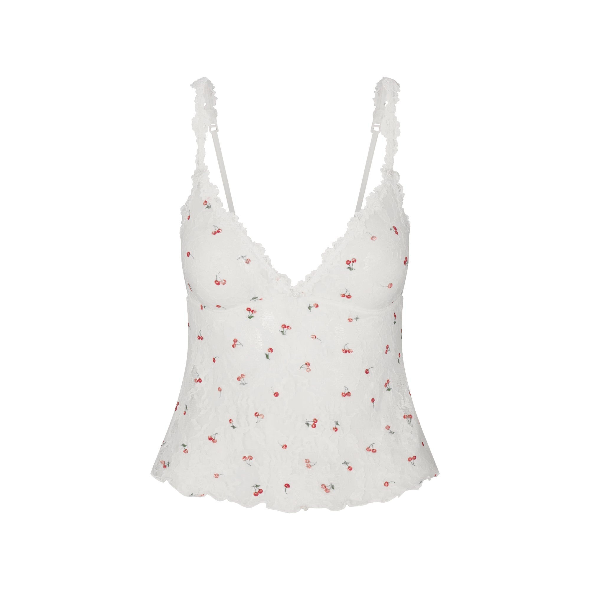 SKIMS STRETCH LACE TRIANGLE CAMI AND SHORT SET | IVORY CHERRY PRINT