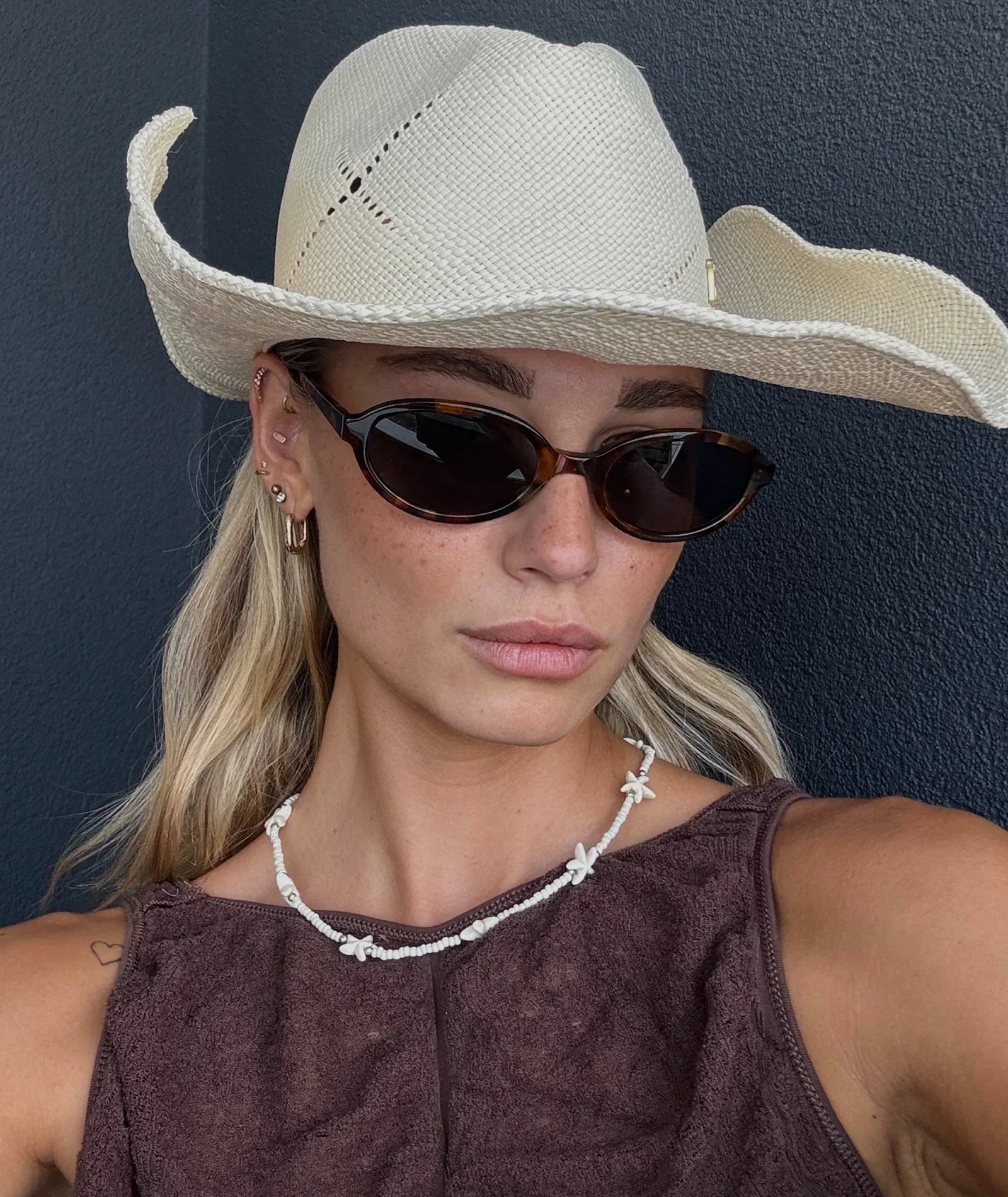 Hazırlıyoruz: June. Şık torto oval çerçevesi ve dumanlı lensi ile her şeyle uyum sağlayan klasik bir stil sunuyor. Sabah egzersizlerinden geç saatlerdeki öğle yemeklerine kadar, nereye giderseniz gidin yanınızda. VEHLA aktif giyim seti ile kombinleyerek mükemmel bir görünüm elde edebilirsiniz.