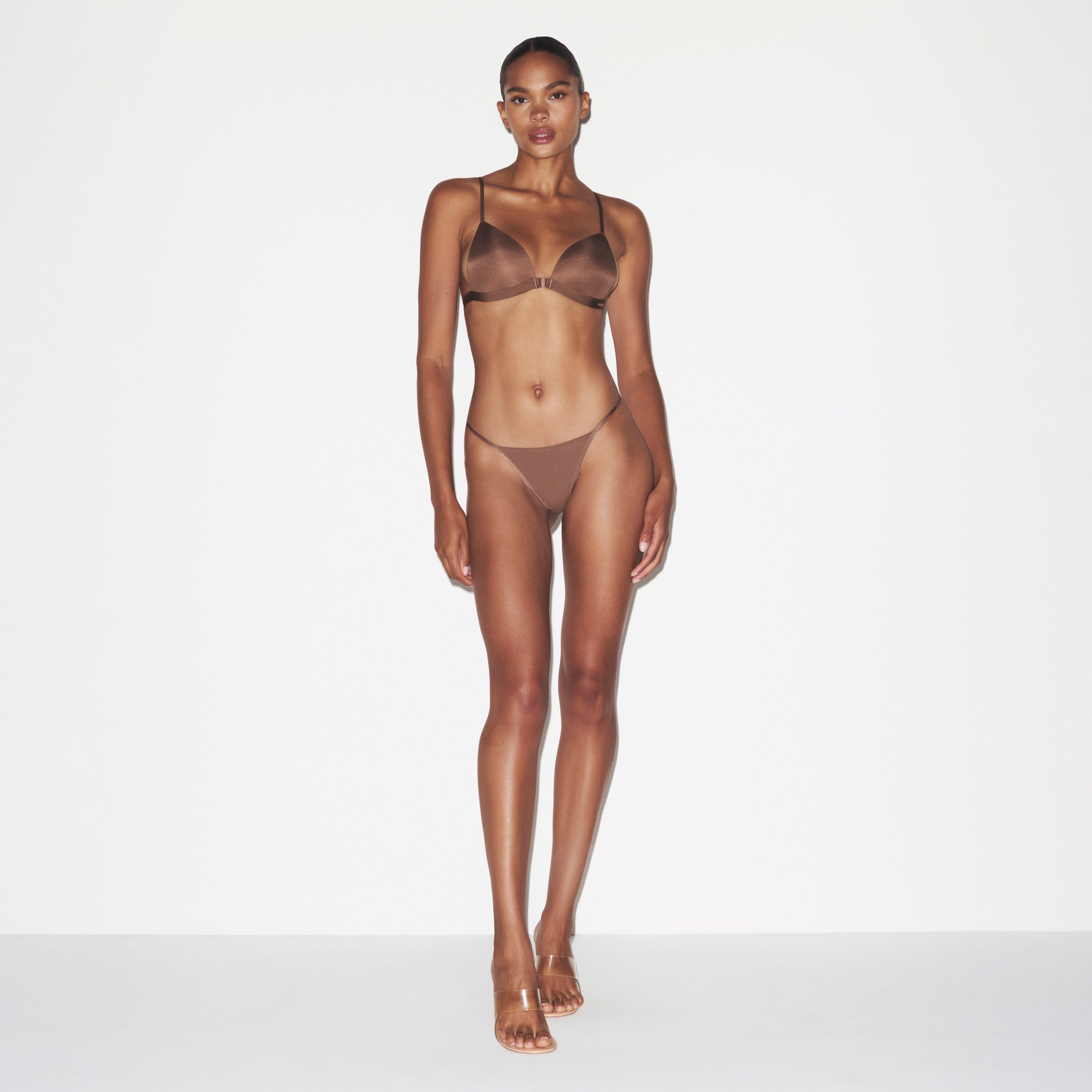 Bu sütyen, zarif bir estetik denge sağlamak için özenle seçilmiş malzemelerle tasarlanmıştır. İnce alt bandındaki SKIMS logosu, şıklığına zarif bir dokunuş ekler.