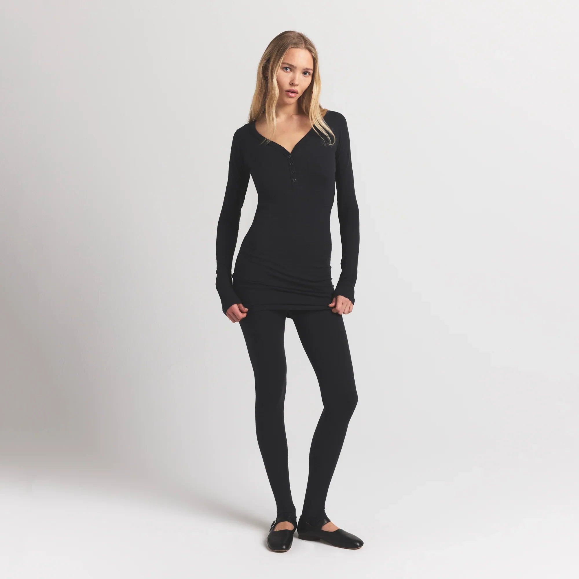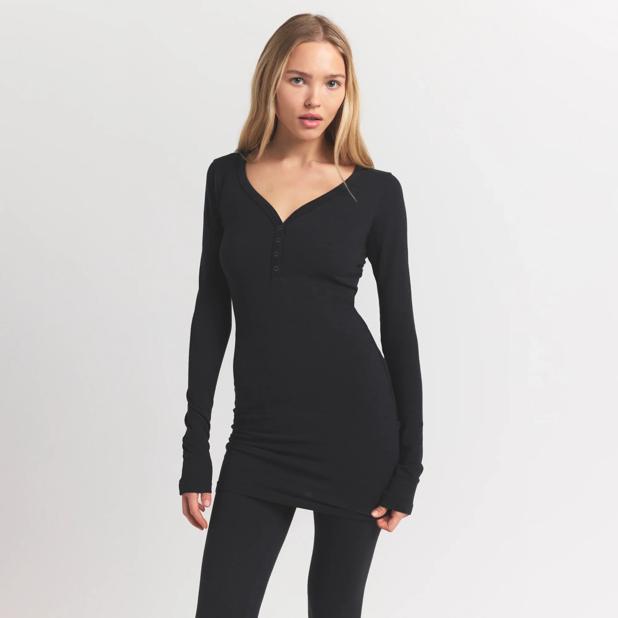 SKIMS WOOL RIB HENLEY DRESS | OBSIDIAN